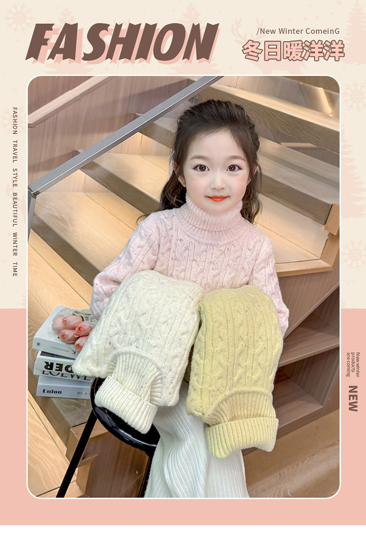여아용 플리스 스웨터, 아동용 니트 풀오버, 2025년 신상 여아용 세련된 하이넥 겨울 베이스 레이어 스웨터스토어 가기