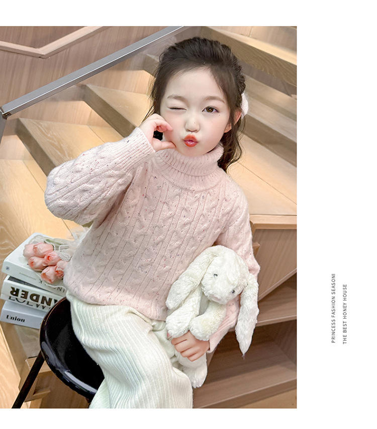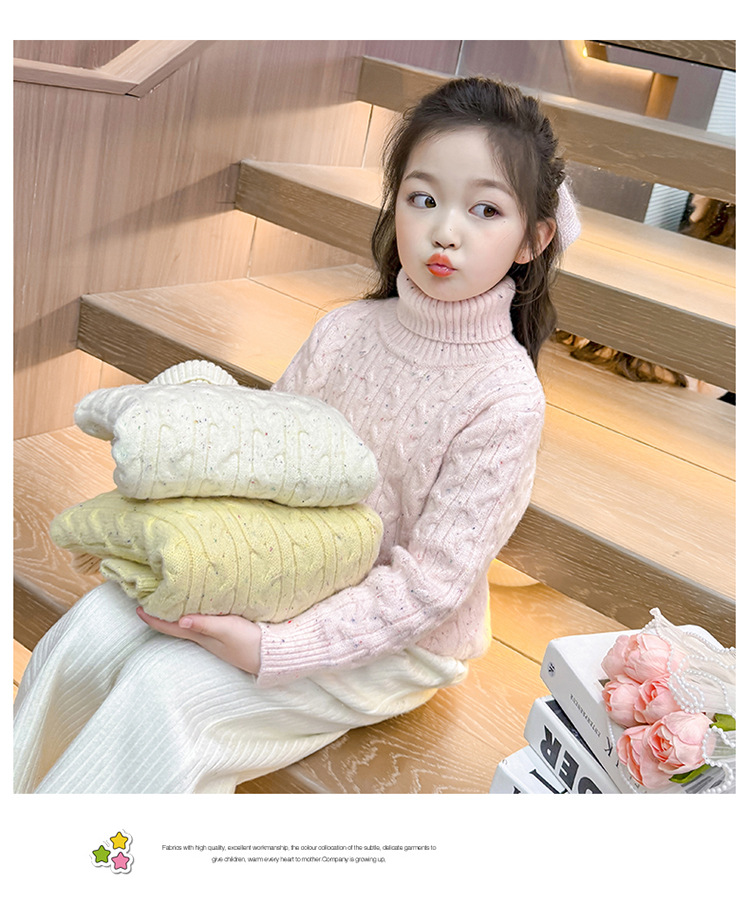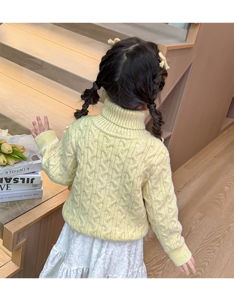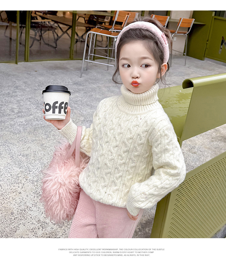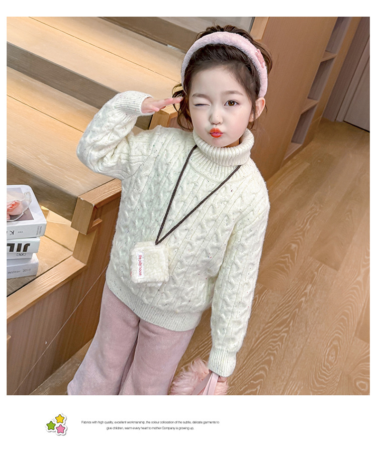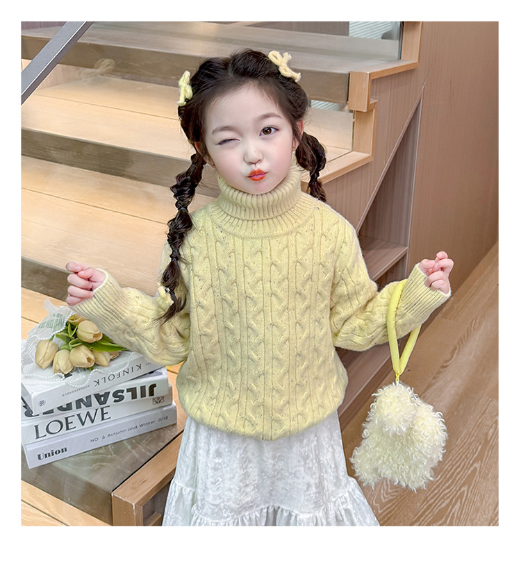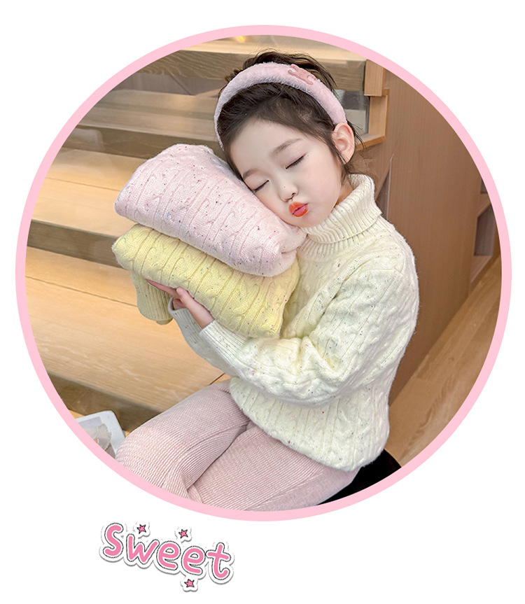 여아용 플리스 스웨터, 아동용 니트 풀오버, 2025년 신상 여아용 세련된 하이넥 겨울 베이스 레이어 스웨터