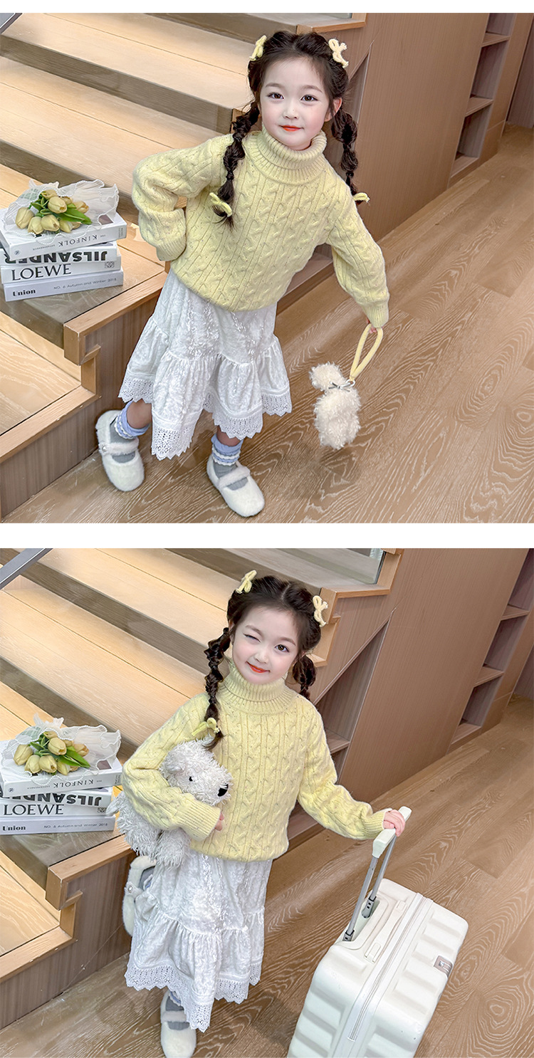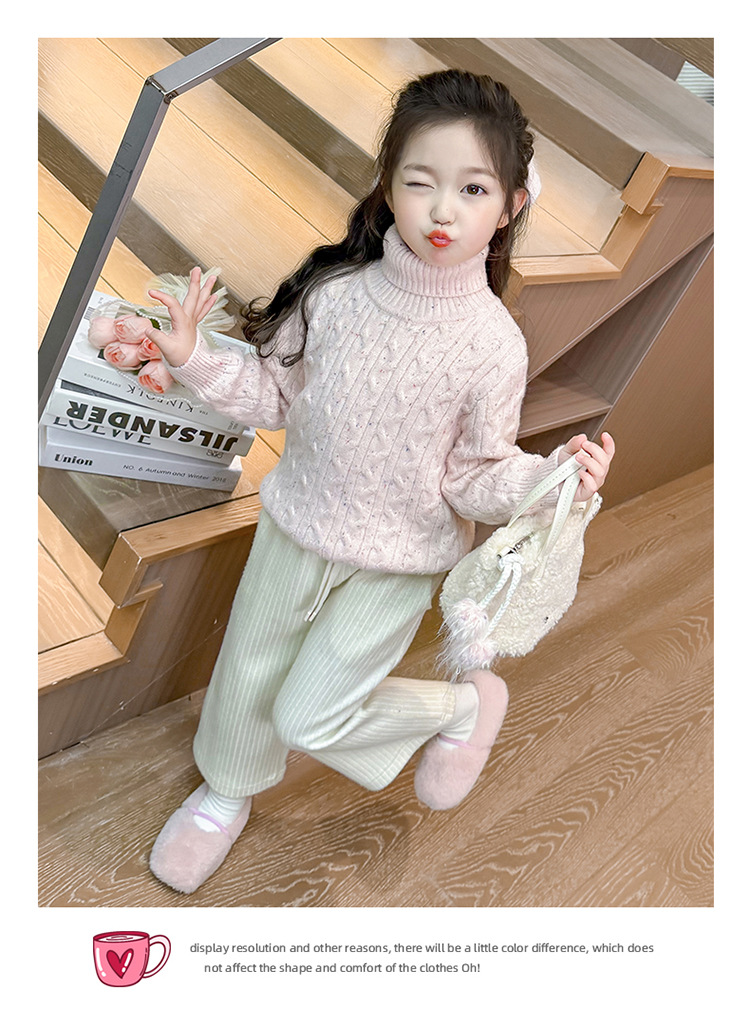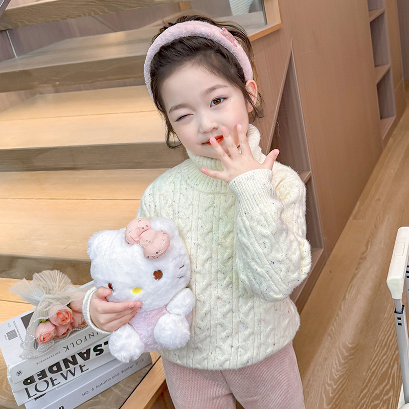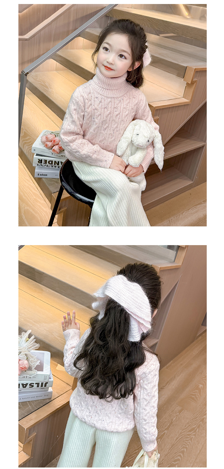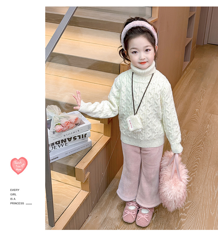 여아용 플리스 스웨터, 아동용 니트 풀오버, 2025년 신상 여아용 세련된 하이넥 겨울 베이스 레이어 스웨터