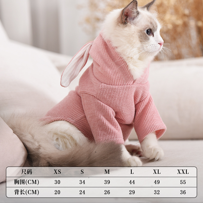 토끼 귀 운동복 개 쓴 곰 테디 파두 고양이 옷 애완 동물 옷 키티 옷 봄과 가을 두 다리