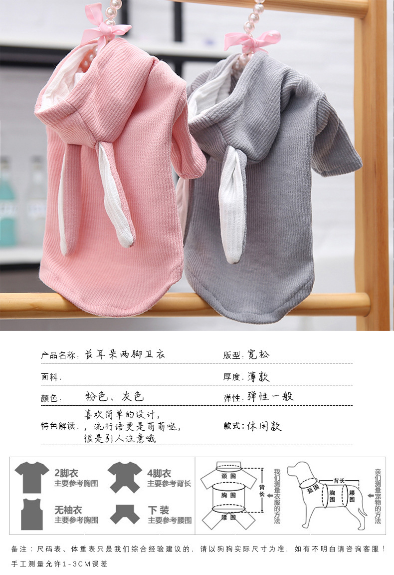 토끼 귀 운동복 개 쓴 곰 테디 파두 고양이 옷 애완 동물 옷 키티 옷 봄과 가을 두 다리스토어 가기