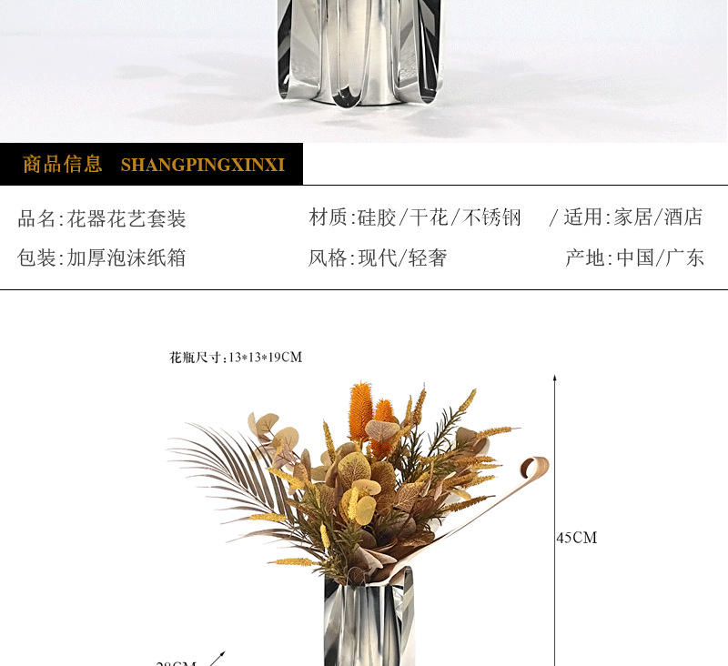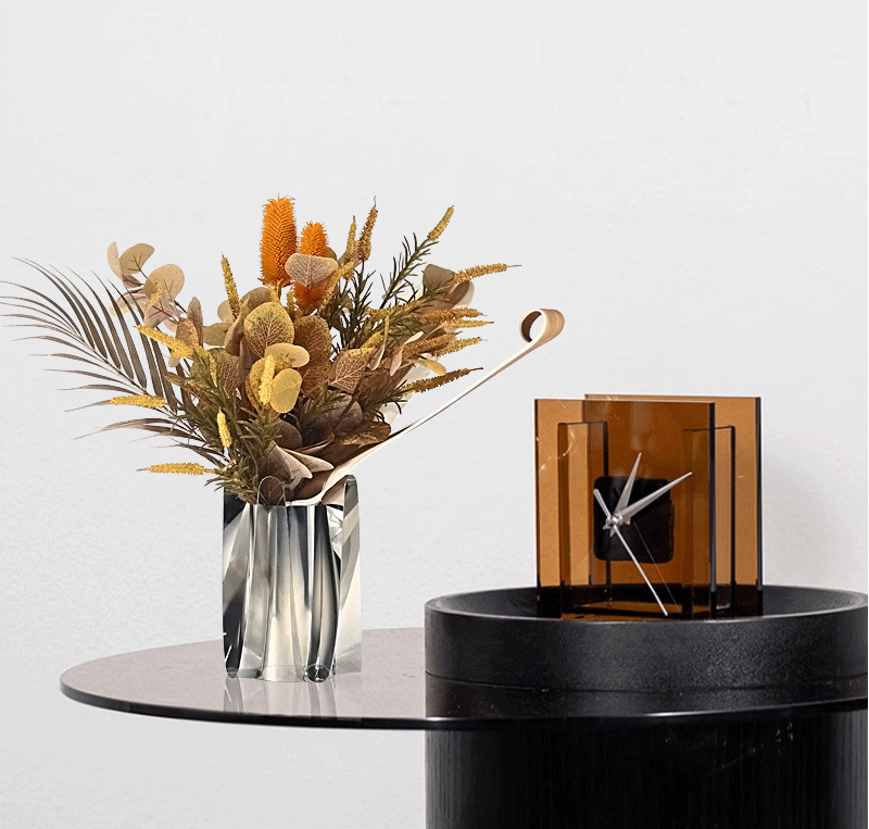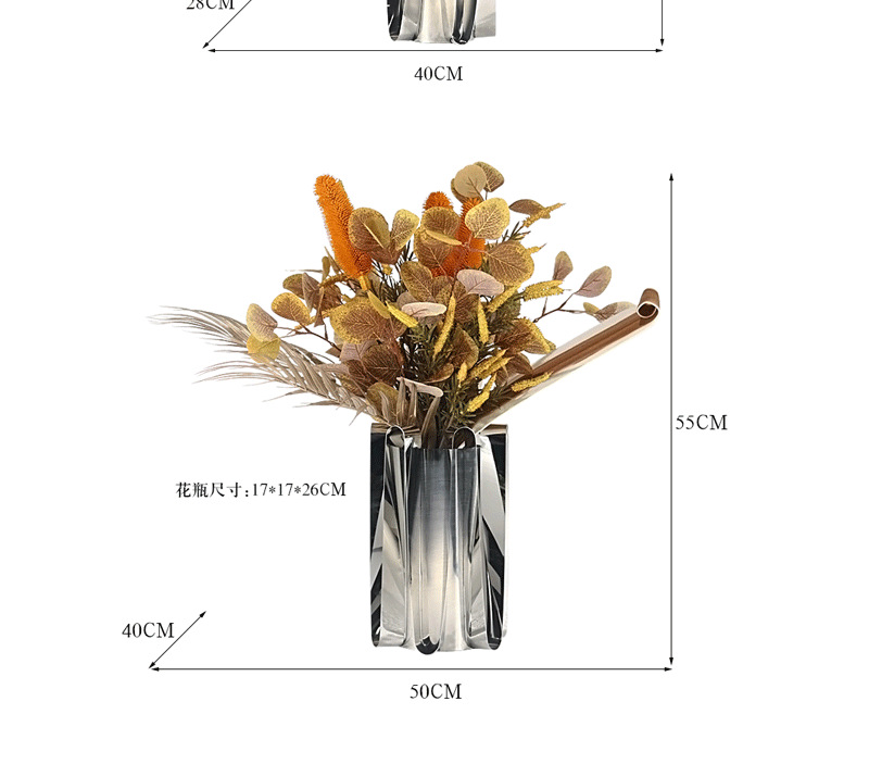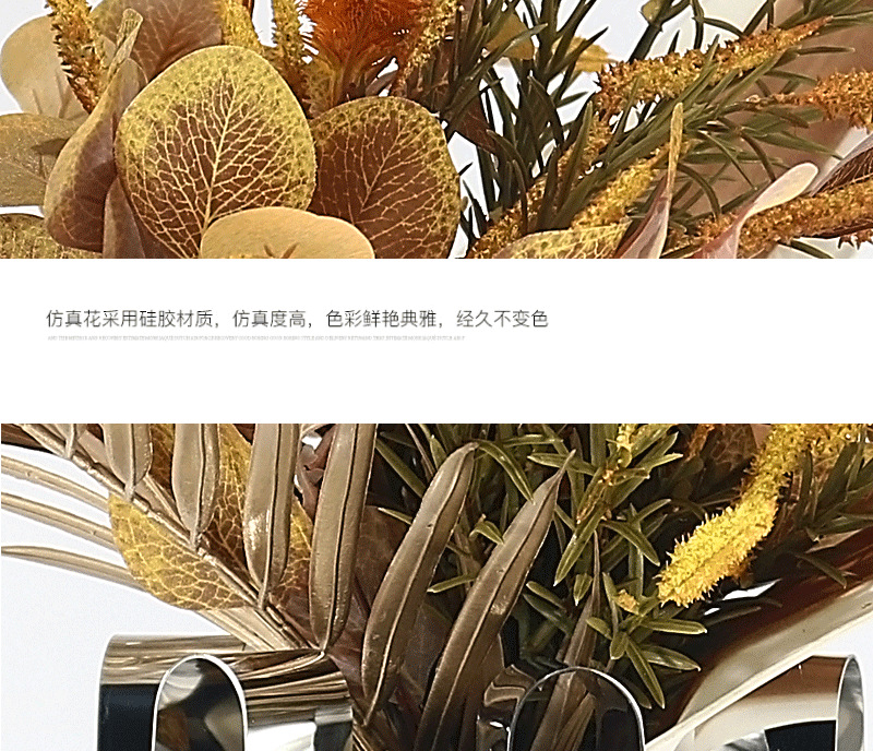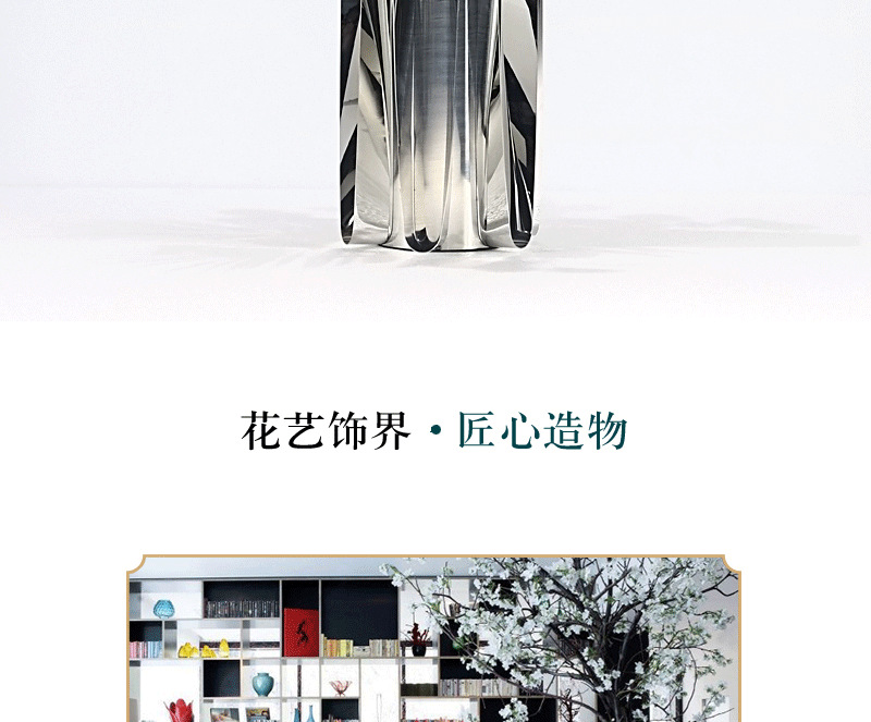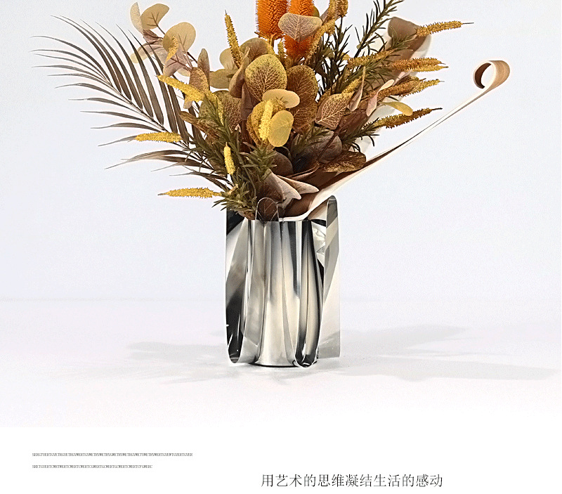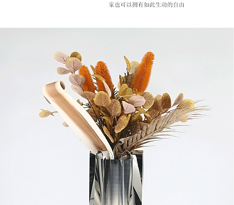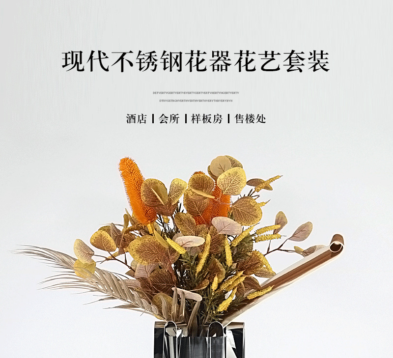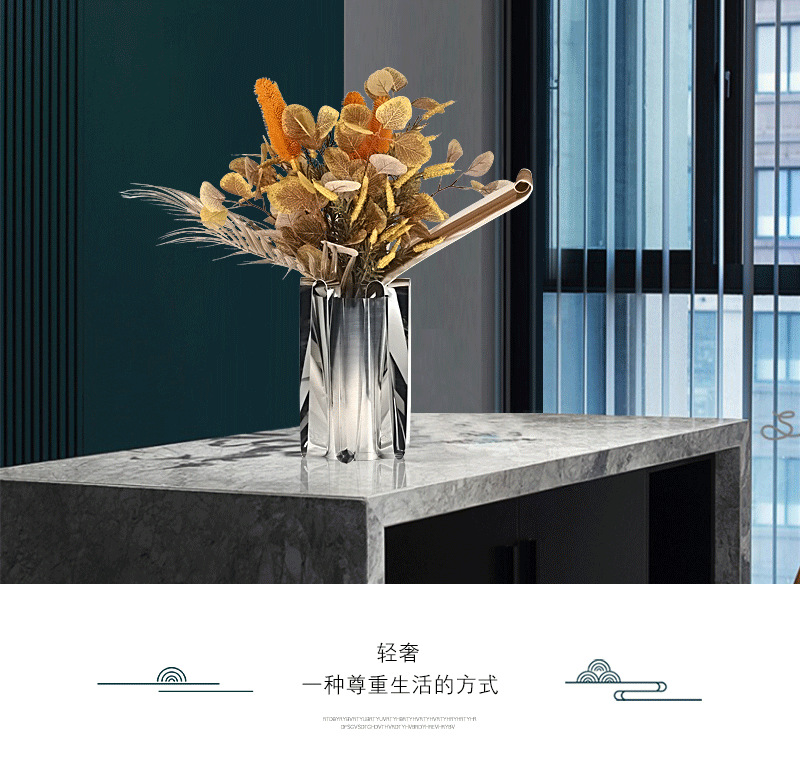 현대 빛 럭셔리 스테인레스 스틸 하이 엔드 금속 꽃병 거실 테이블 시뮬레이션 꽃 예술 판매 사무실 부드러운 장식 장식품