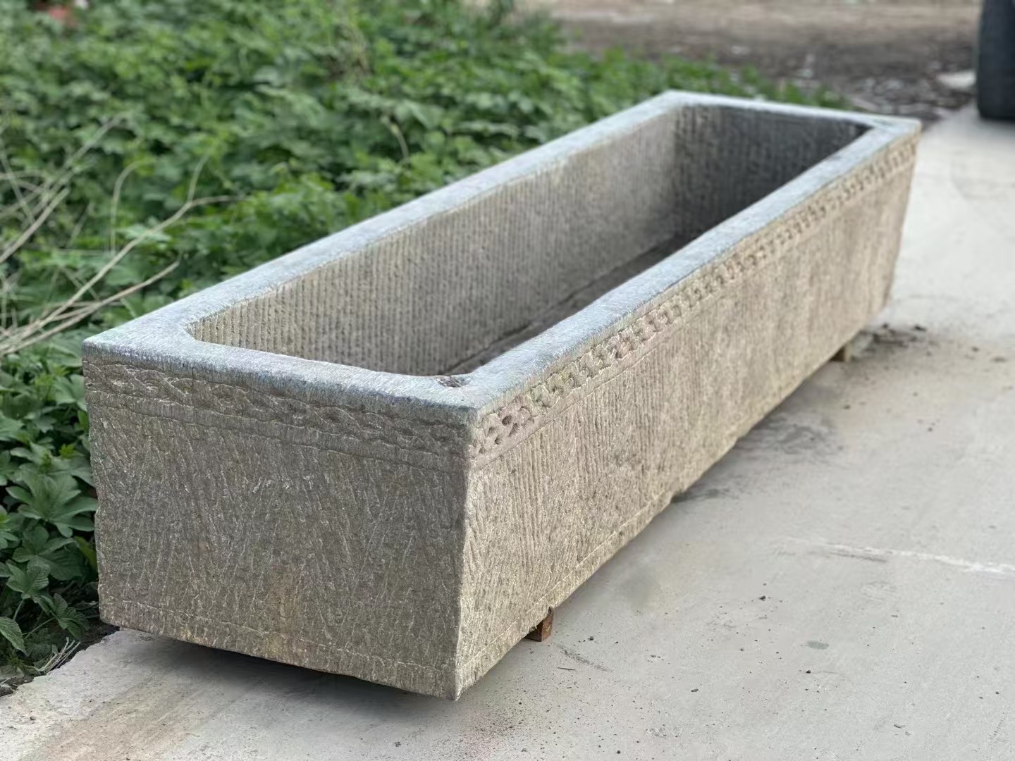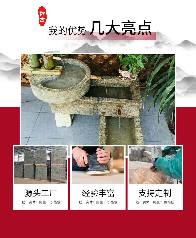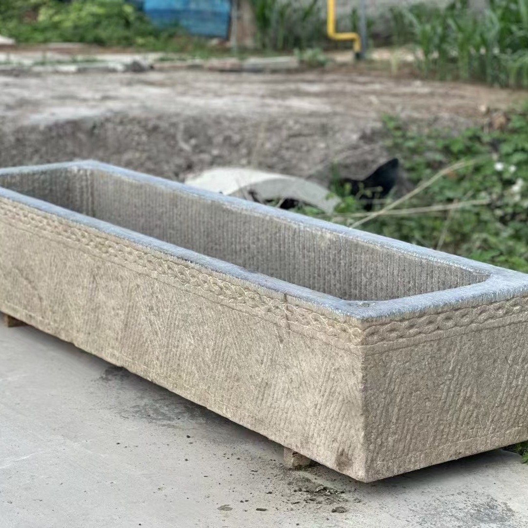 자연 오래 된 돌 트로프 야외 물고기 탱크 오래 된 돼지 트로프 돌 공장 정원 풍경 소 쟁기 물고기 연못 돌 쟁기스토어 가기