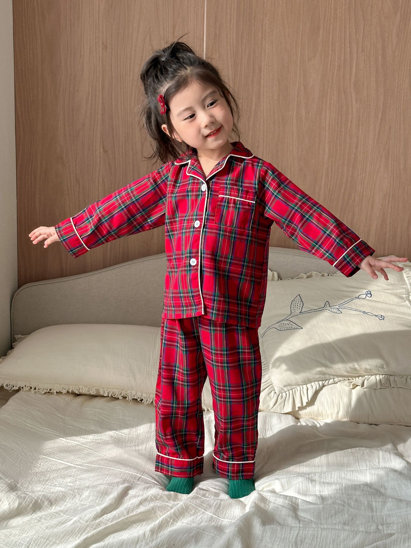어린이 잠옷 소년 면 격자 무늬 크리스마스 2025 새 봄과 가을 소녀 긴 소매 세트 아기 집 옷스토어 가기
