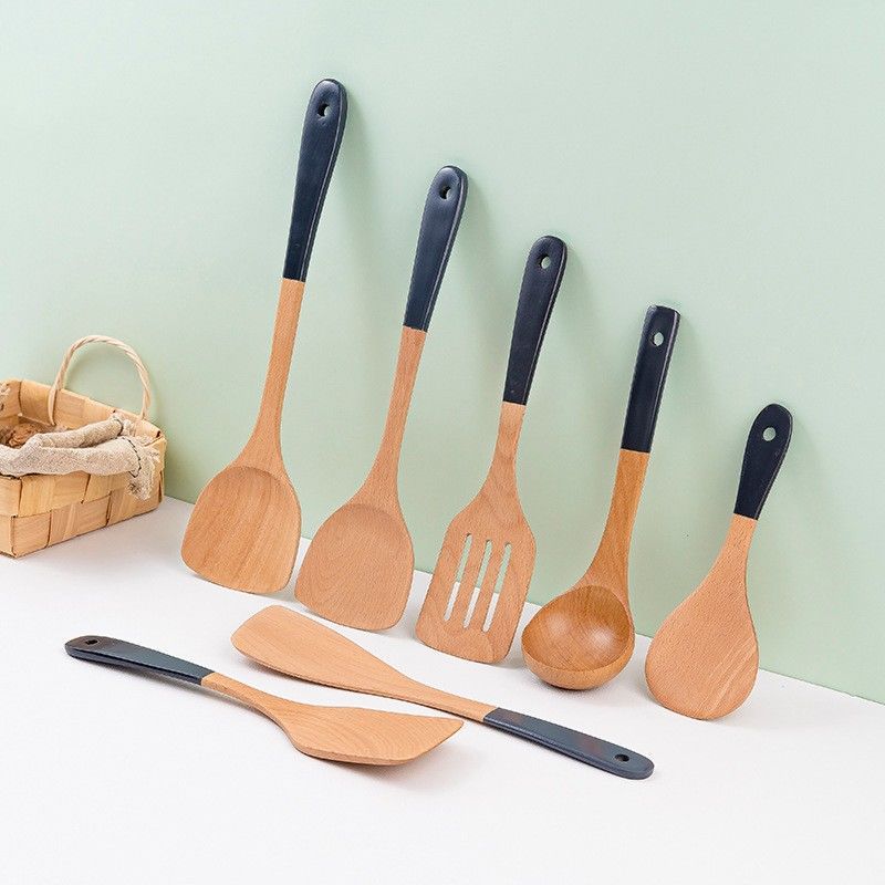 나무 주걱 너도밤 나무 긴 손잡이 볶음 주걱 가정용 비 스틱 팬 나무 주걱 쌀 숟가락 나무 수프 숟가락 요리 주방 핑 런스토어 가기