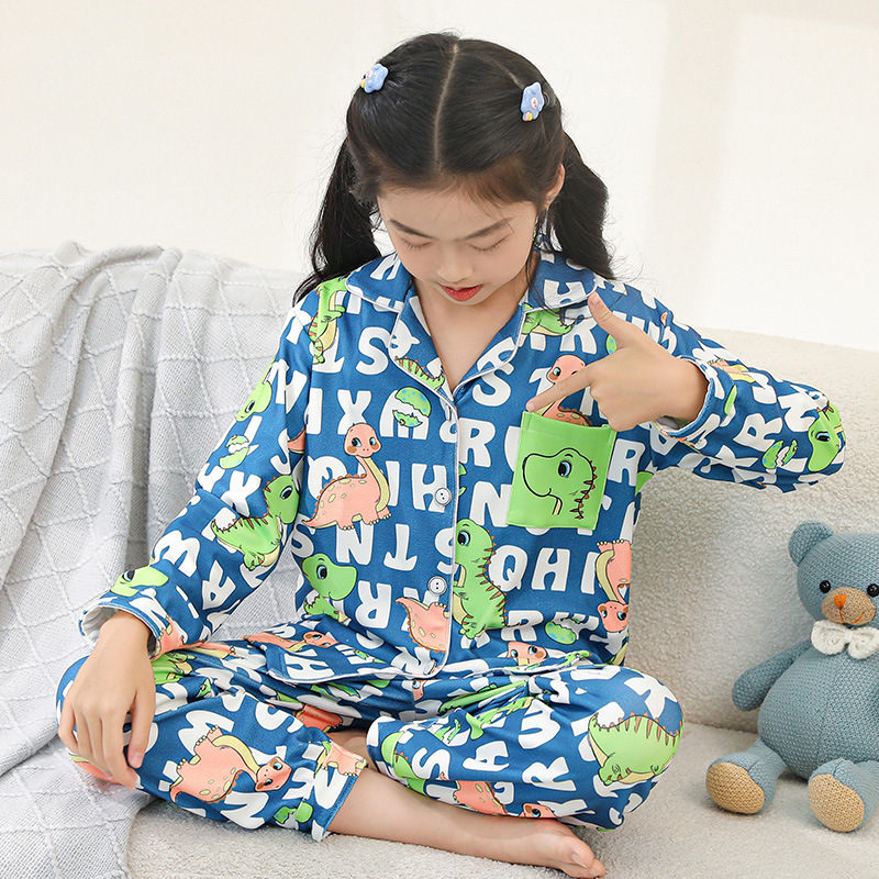 • G 저먼 벨벳 옷깃--여아 파란색 배경 공룡