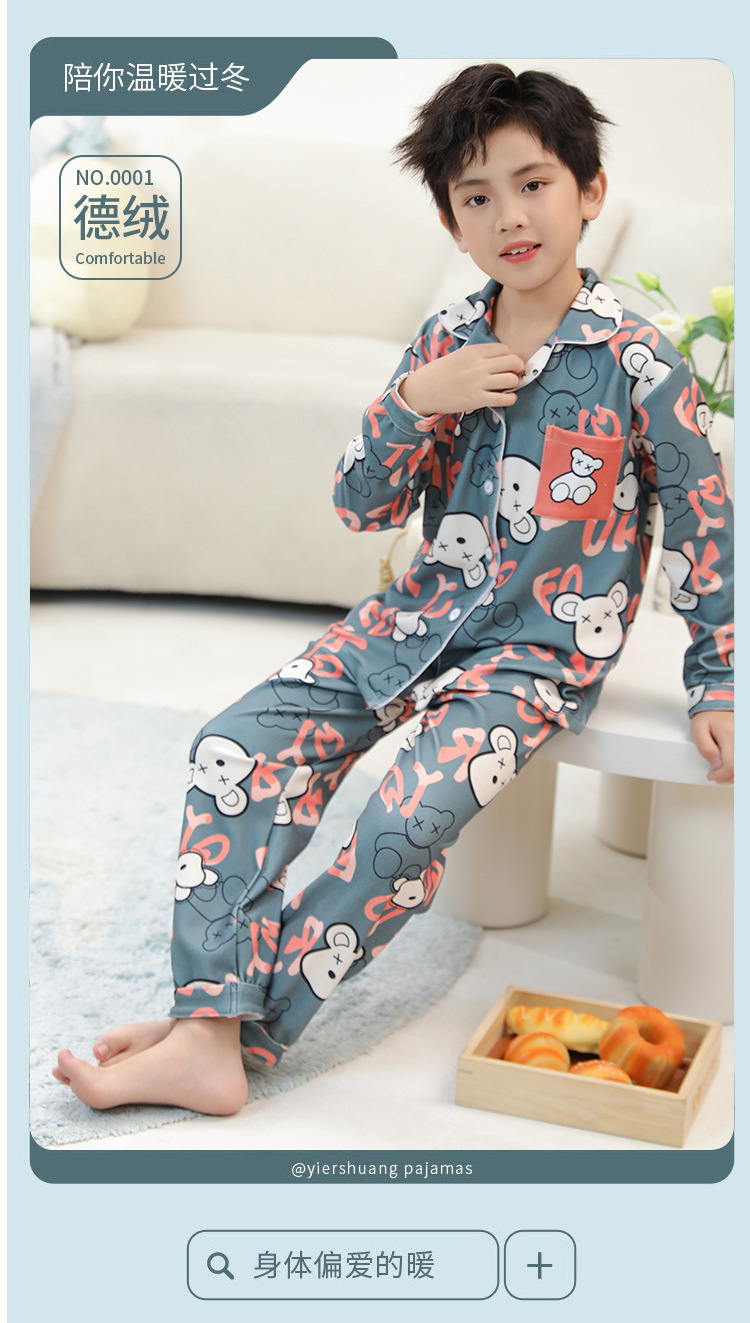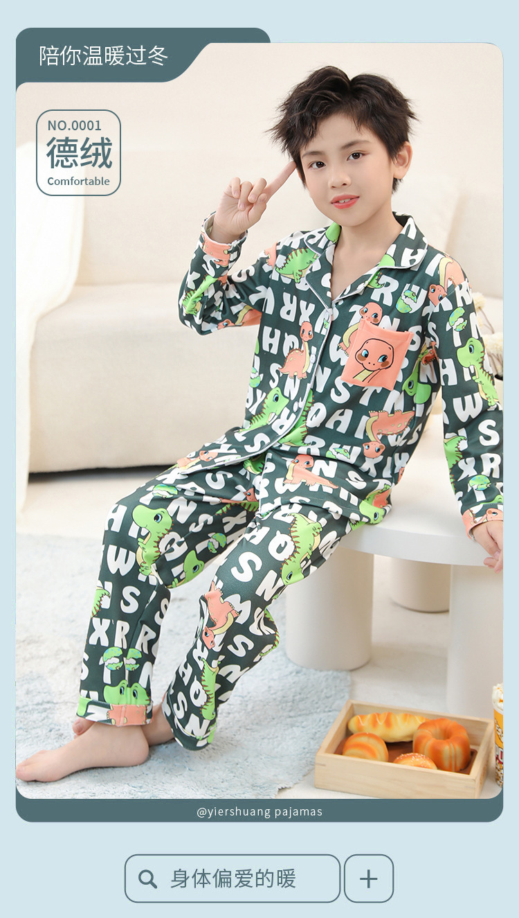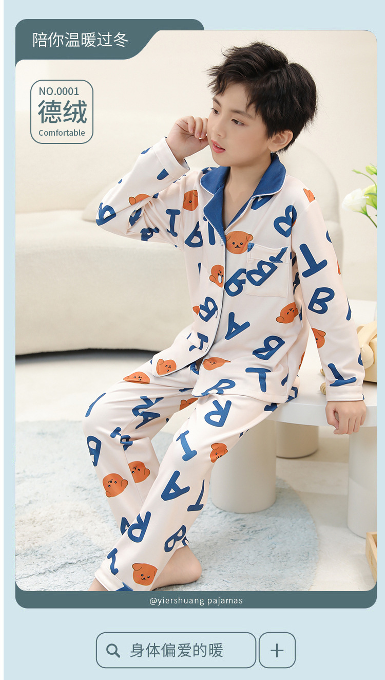 De Rong 어린이 열 속옷 세트 겨울 소년 중 · 대형 어린이 기모 두꺼운 가을 옷 가을 바지 속옷