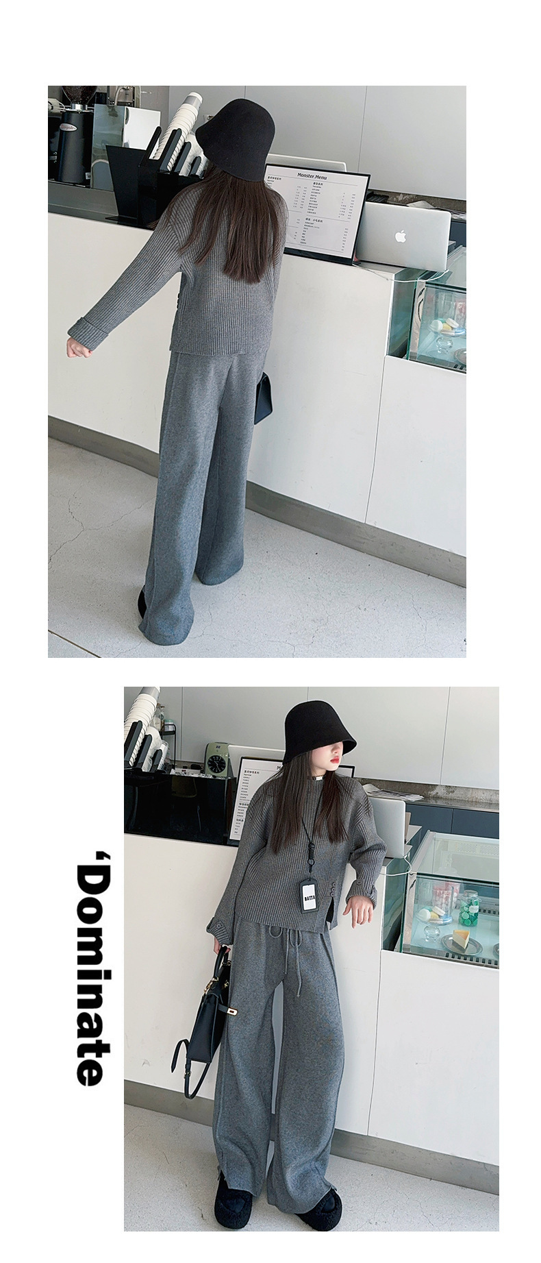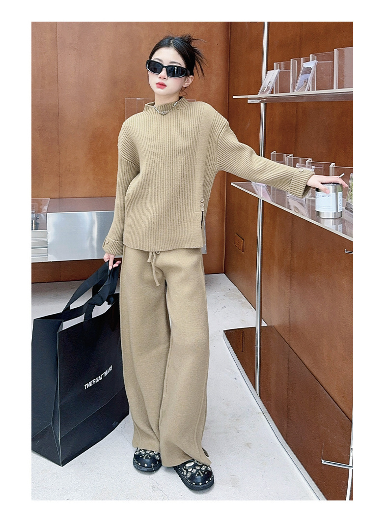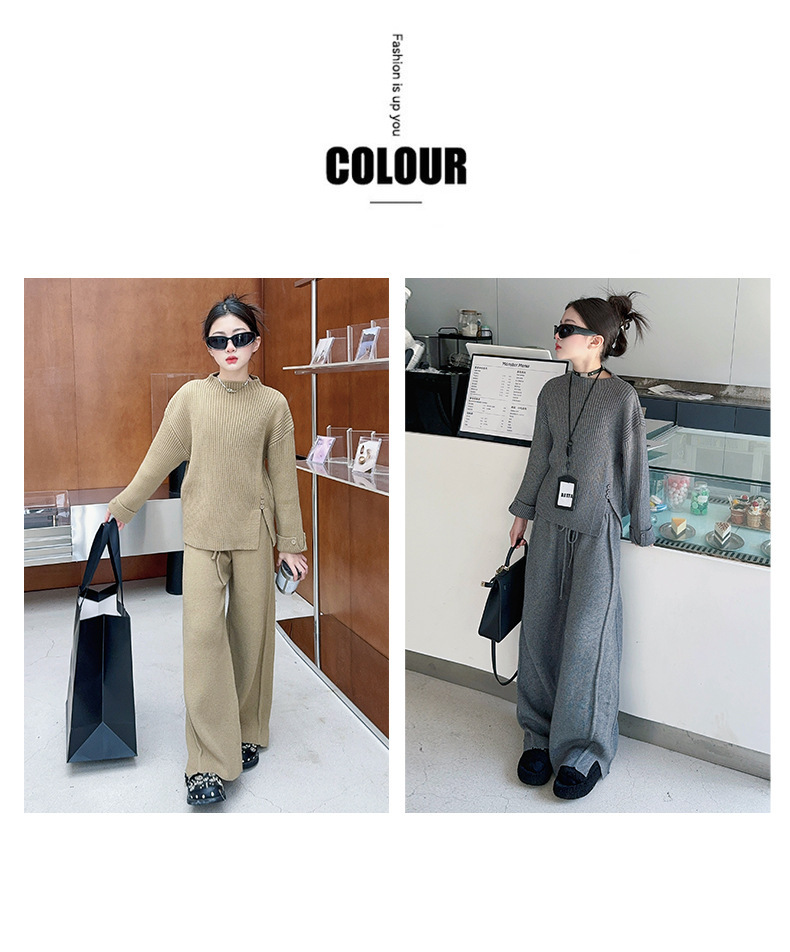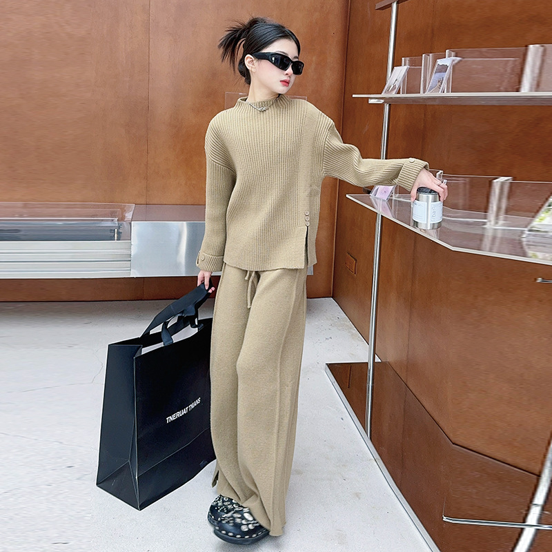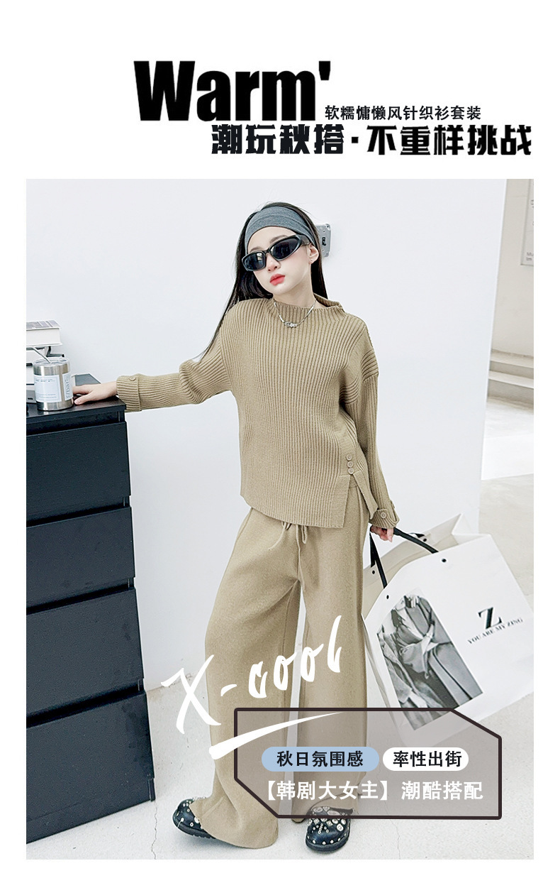 니트 스웨터 느슨한 가을과 겨울 소녀 느슨한 큰 어린이 2024 한국 버전의 세트 캐주얼 조수 새로운 넓은 다리 바지스토어 가기
