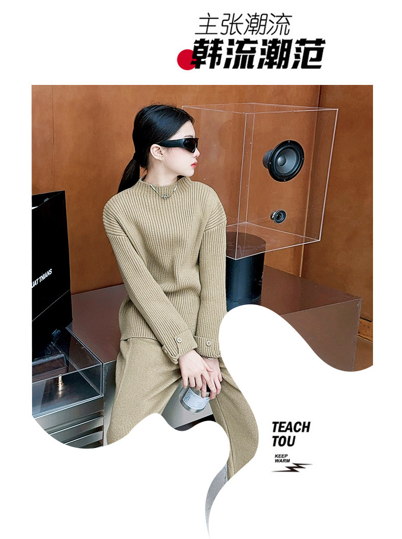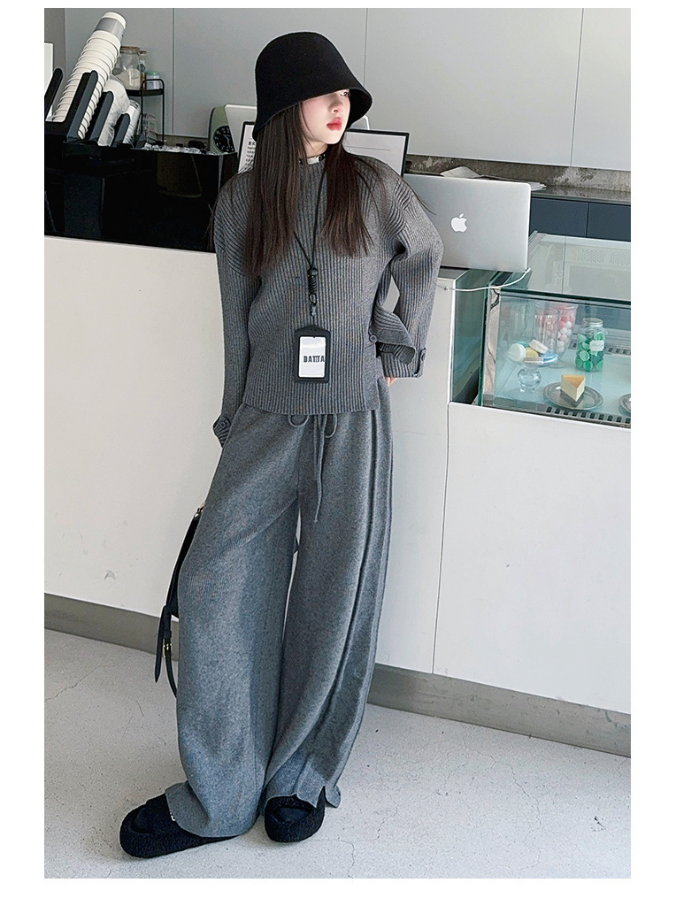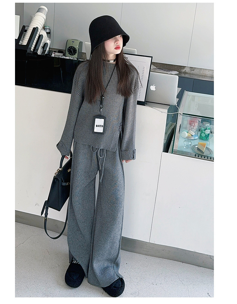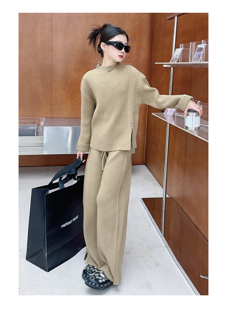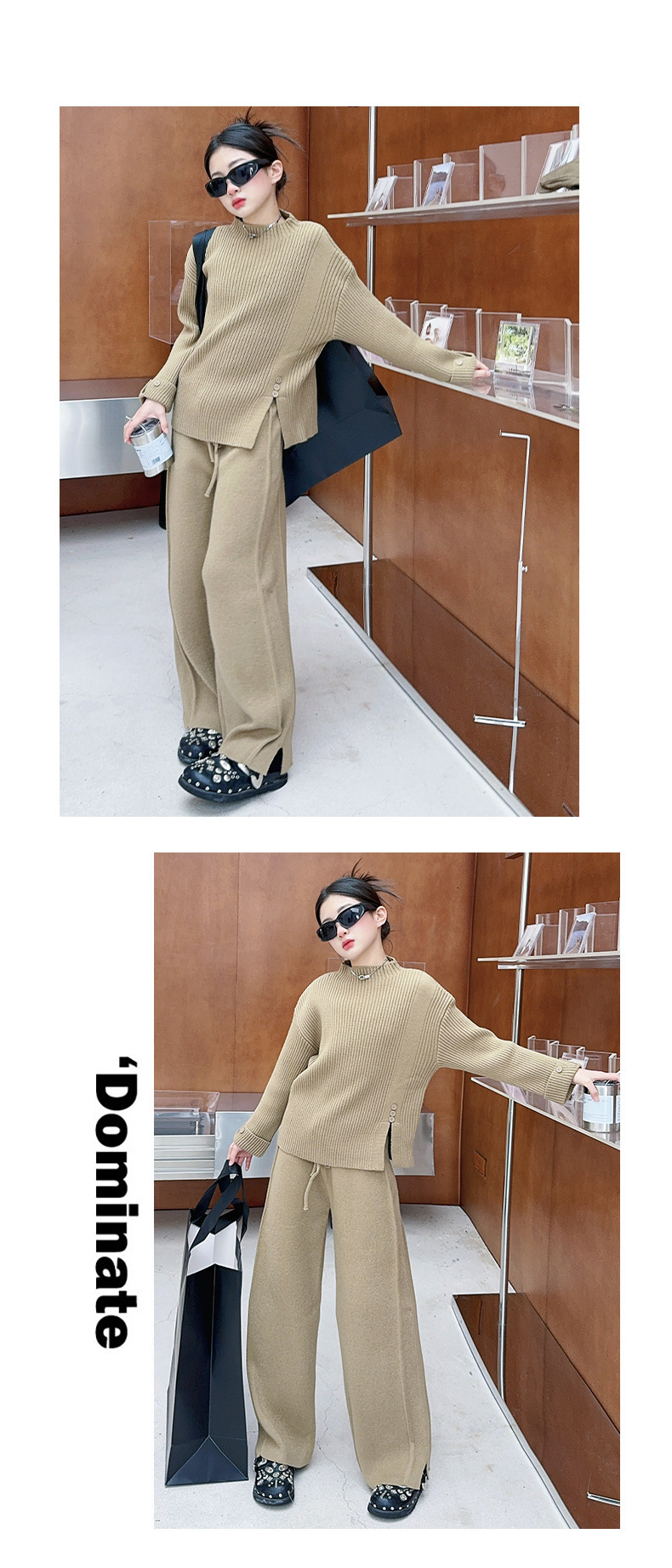 니트 스웨터 느슨한 가을과 겨울 소녀 느슨한 큰 어린이 2024 한국 버전의 세트 캐주얼 조수 새로운 넓은 다리 바지스토어 가기