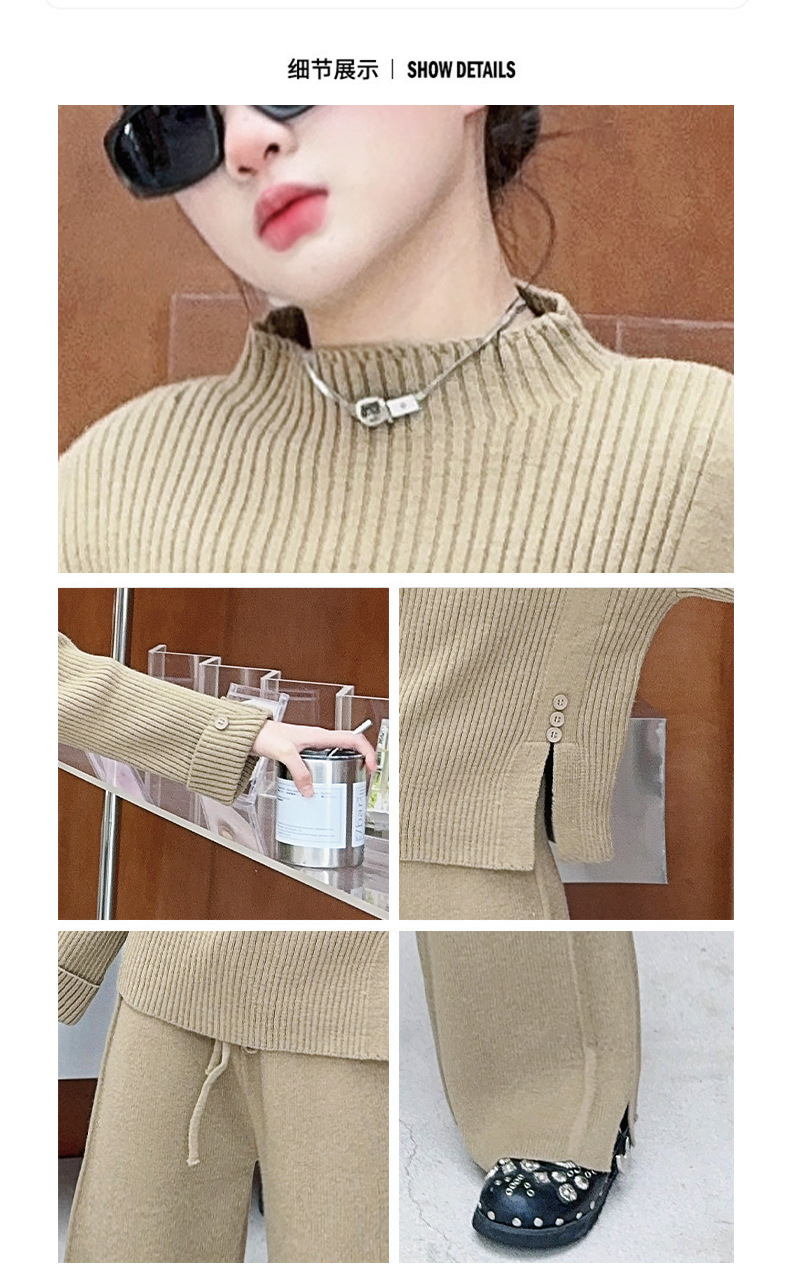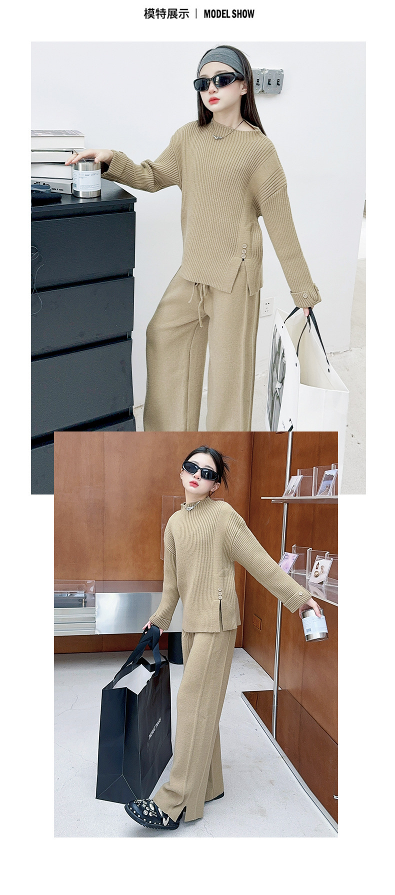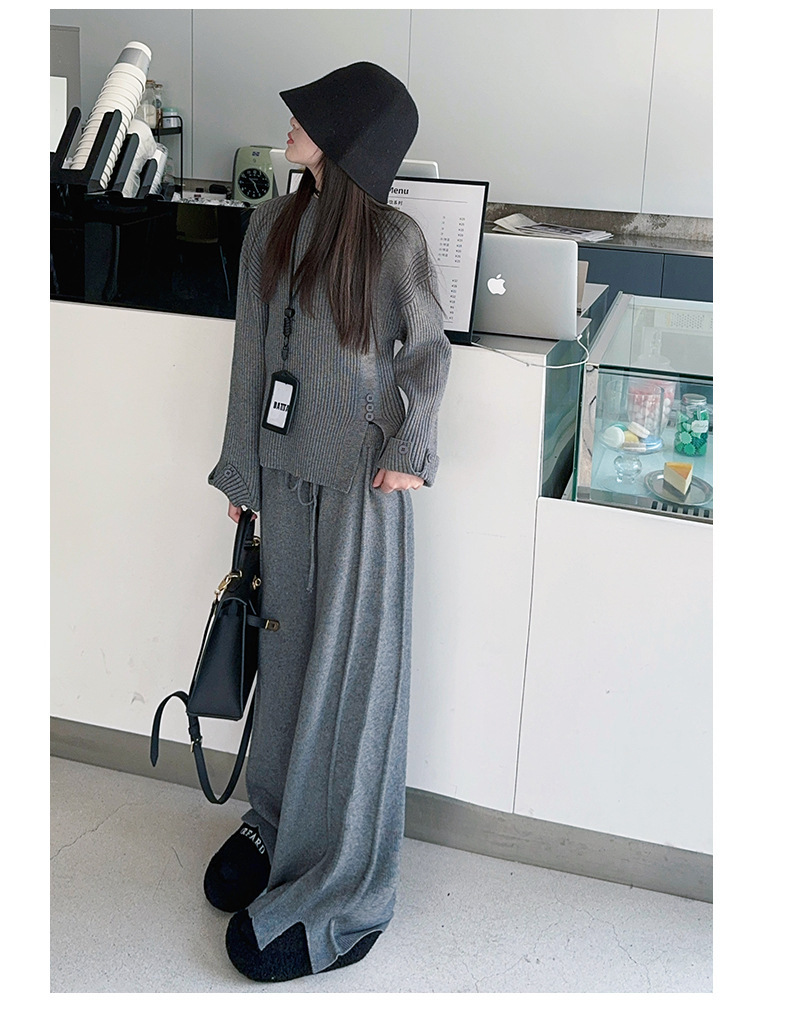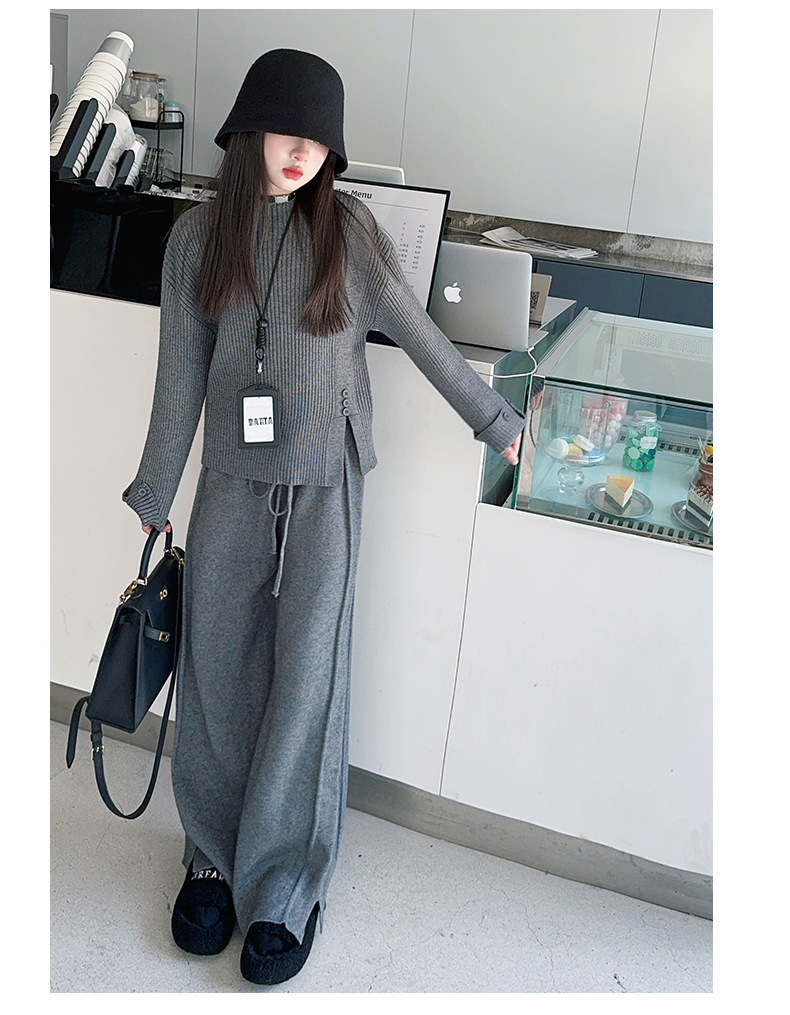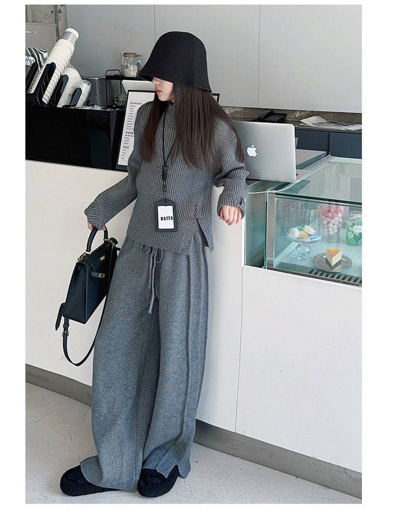니트 스웨터 느슨한 가을과 겨울 소녀 느슨한 큰 어린이 2024 한국 버전의 세트 캐주얼 조수 새로운 넓은 다리 바지스토어 가기