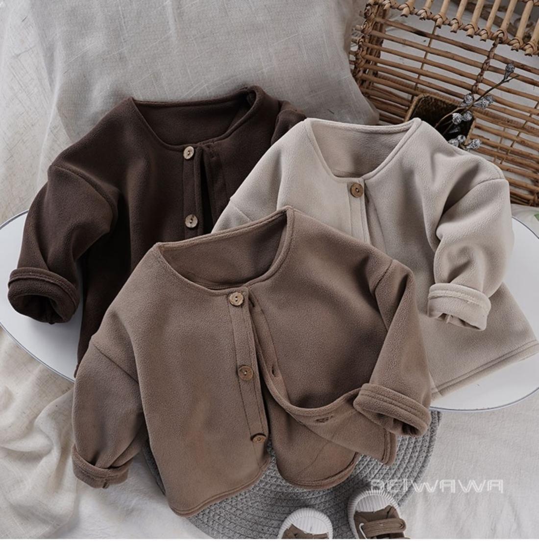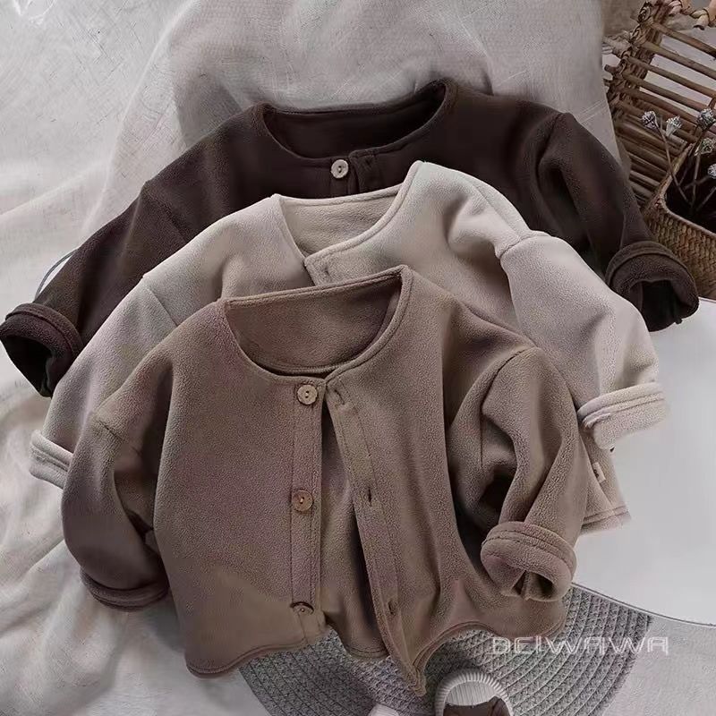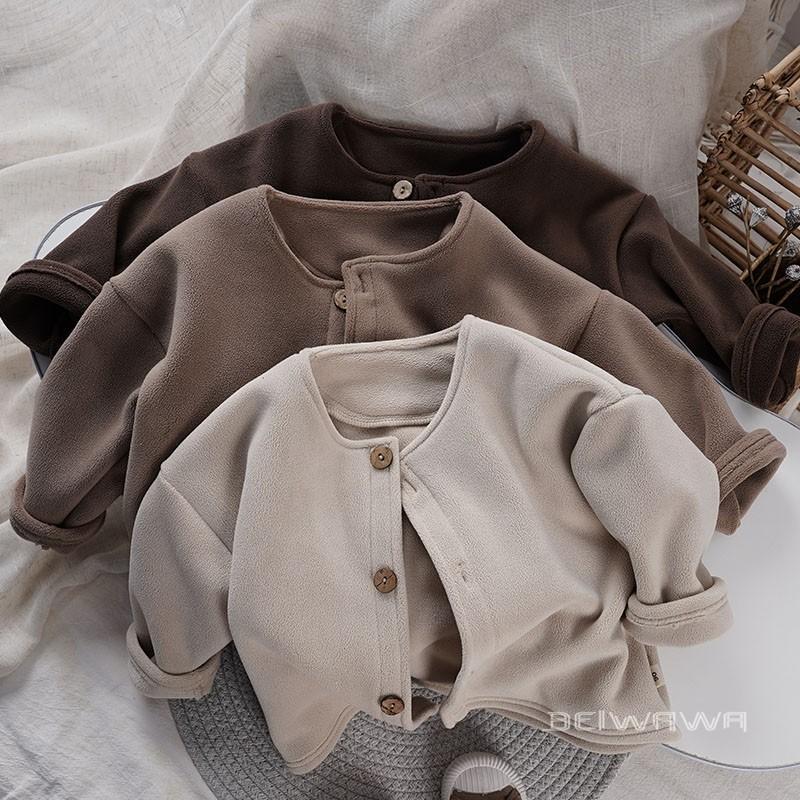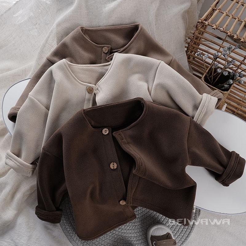 아기 가을과 겨울 어린이 따뜻한 카디건 소년 원피스 루즈 재킷 소녀 재킷 캐주얼 한국식 기모 스타일