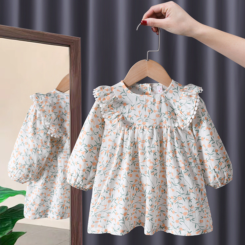 소녀 원피스 2024 봄과 가을 새로운 어린이 원피스 긴 소매 면 목가적 스타일 아기 공주 꽃 원피스스토어 가기