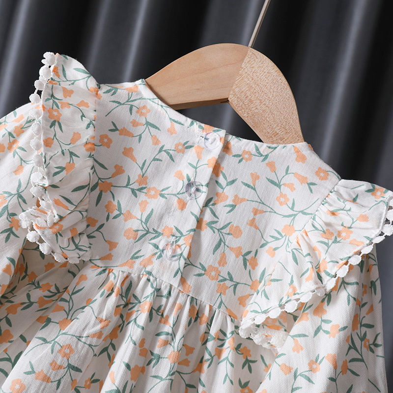 소녀 원피스 2024 봄과 가을 새로운 어린이 원피스 긴 소매 면 목가적 스타일 아기 공주 꽃 원피스