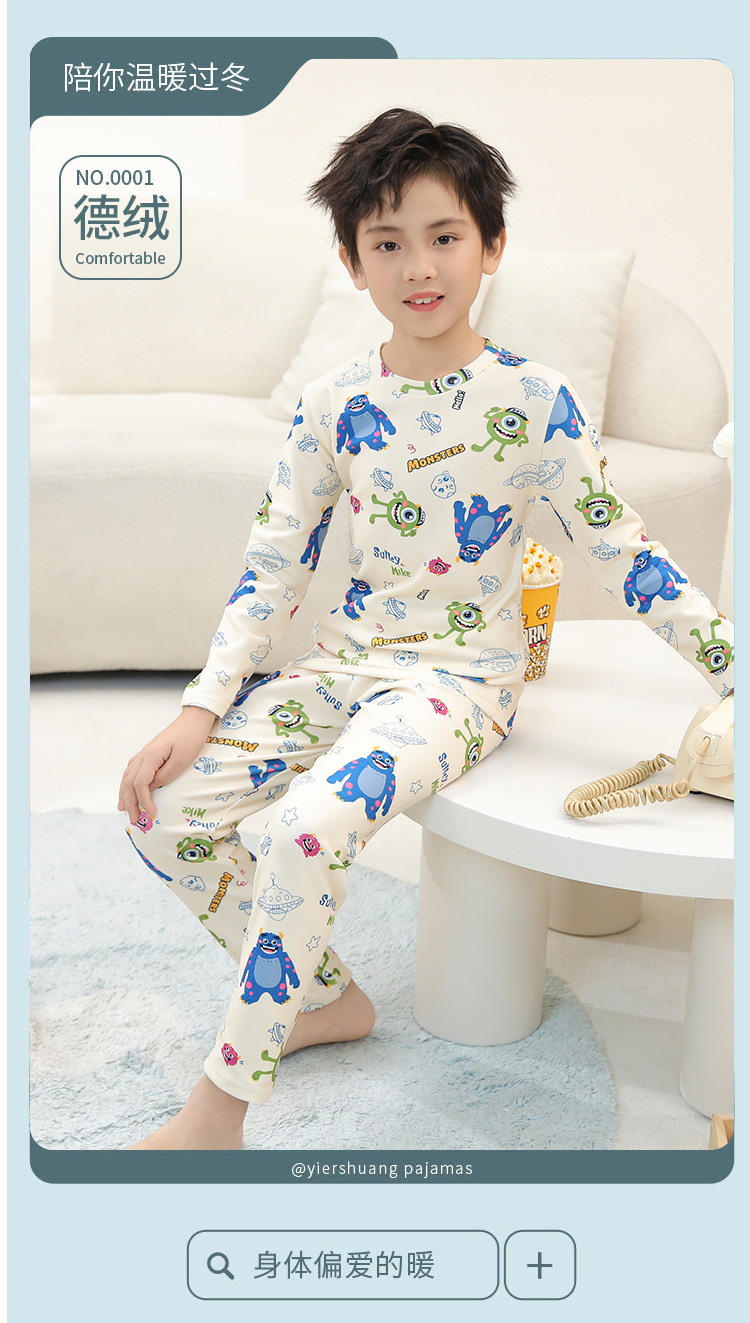 가을과 겨울 어린이 벨벳 속옷 세트 소년 소녀 가을 옷 가을 바지 대형 어린이 가정 옷 아기 잠옷 따뜻한 옷