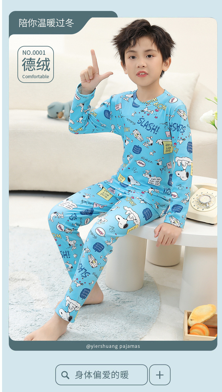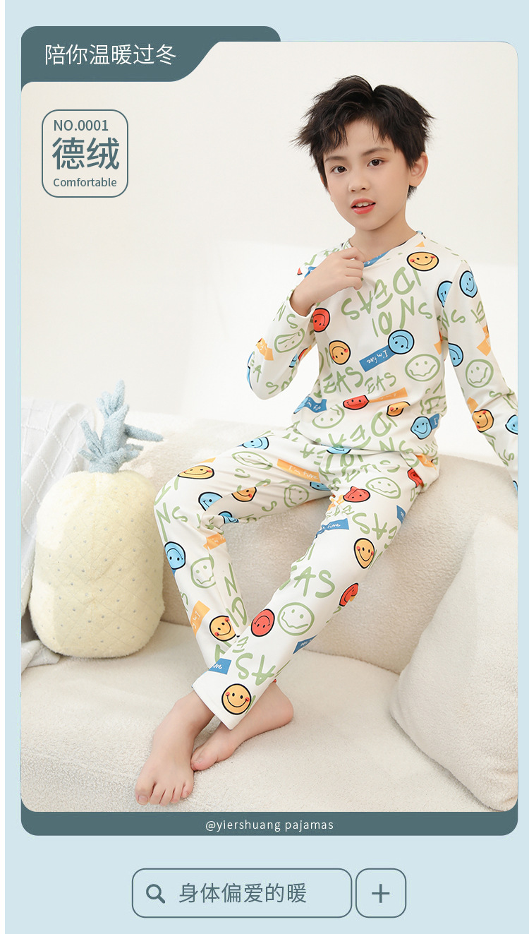 가을과 겨울 어린이 벨벳 속옷 세트 소년 소녀 가을 옷 가을 바지 대형 어린이 가정 옷 아기 잠옷 따뜻한 옷스토어 가기