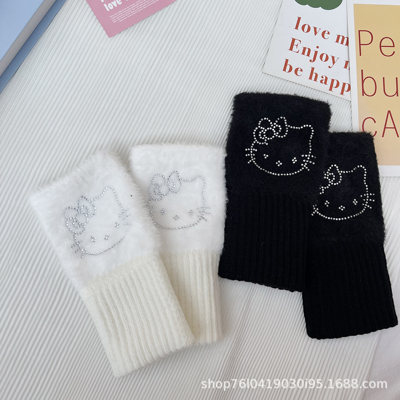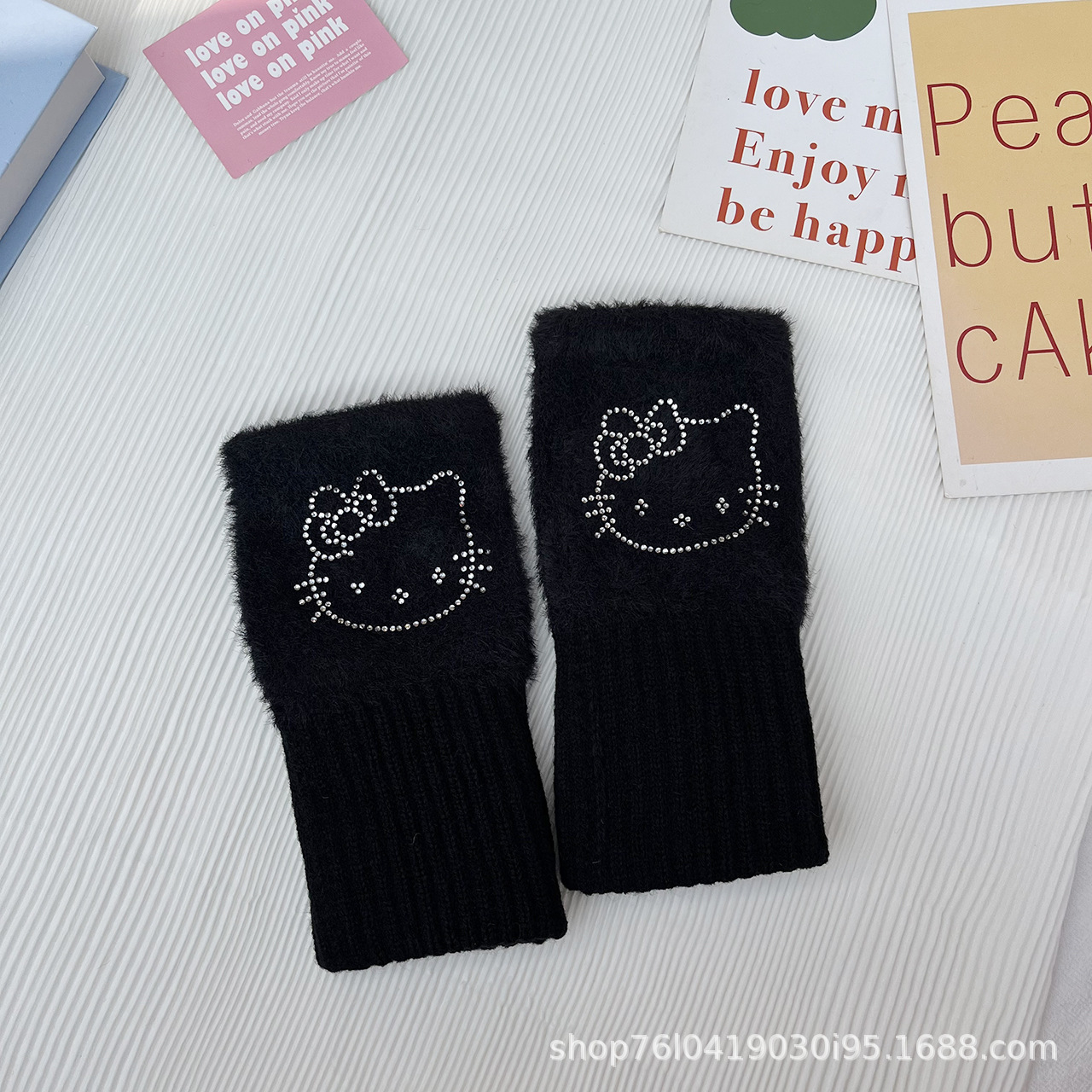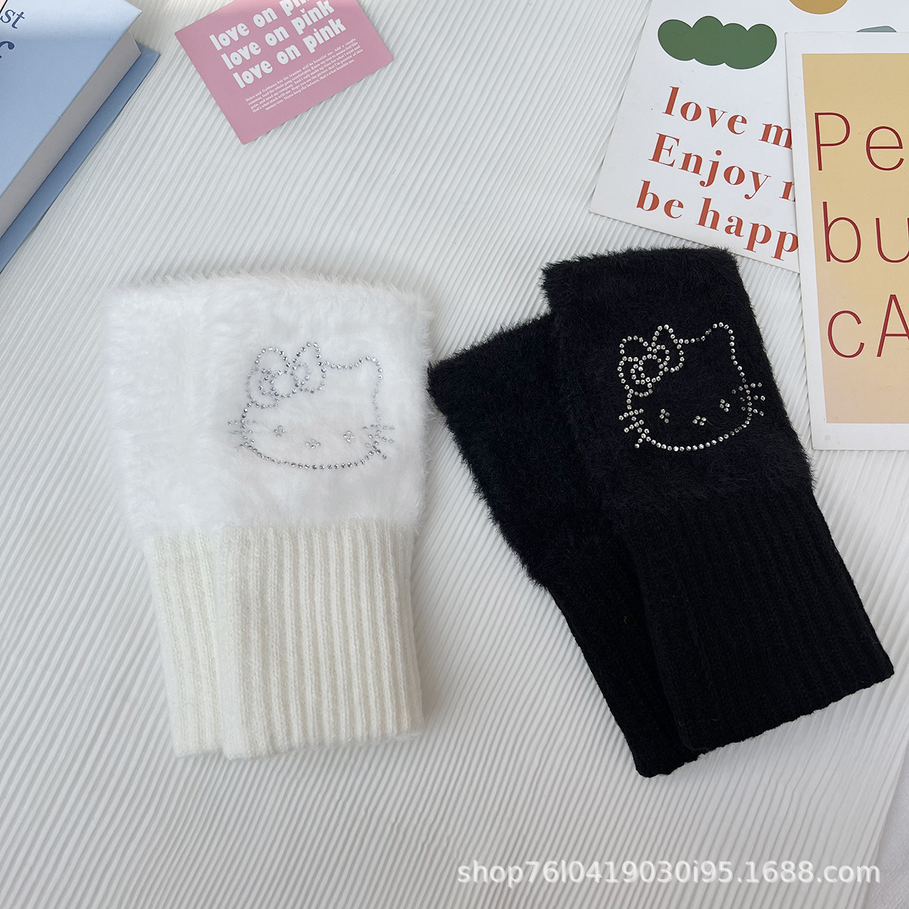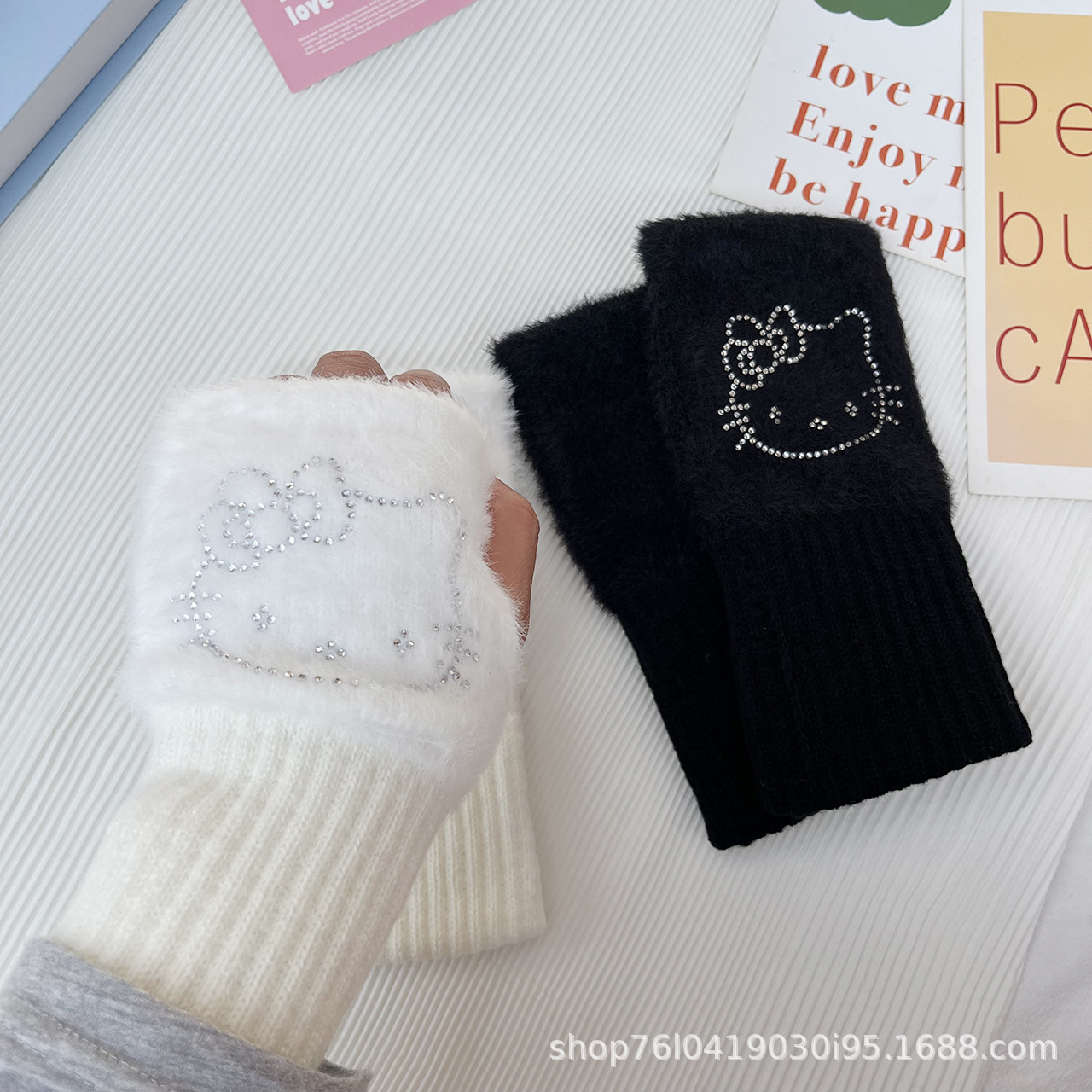 귀여운 만화 고양이 니트 반 손가락 장갑 여성의 겨울 봉제 두꺼운 따뜻한 손목 보호 학생 글쓰기 장갑스토어 가기