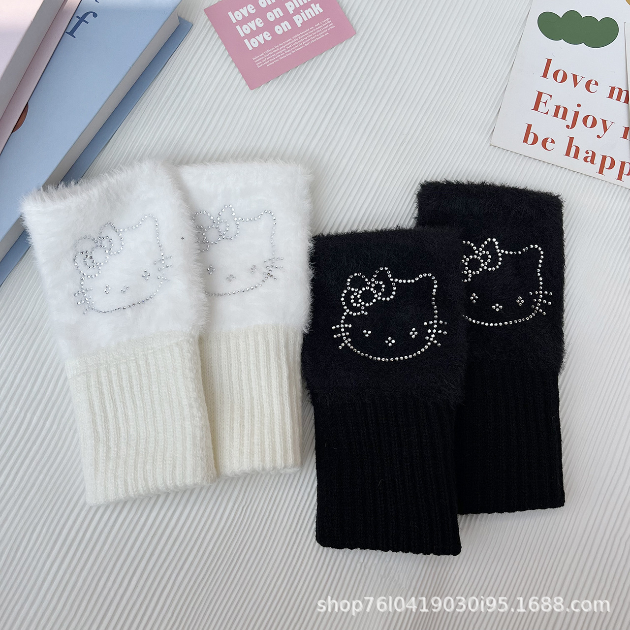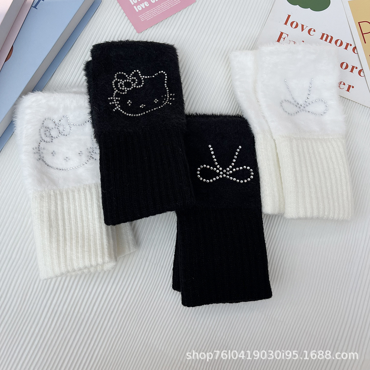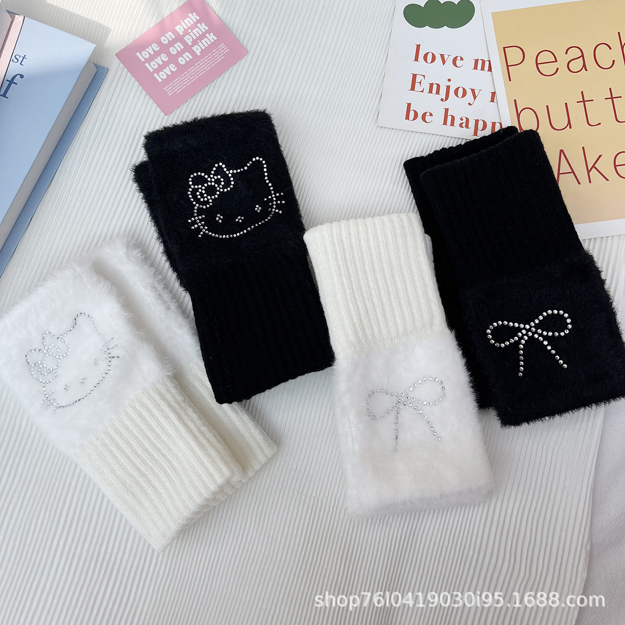 귀여운 만화 고양이 니트 반 손가락 장갑 여성의 겨울 봉제 두꺼운 따뜻한 손목 보호 학생 글쓰기 장갑스토어 가기