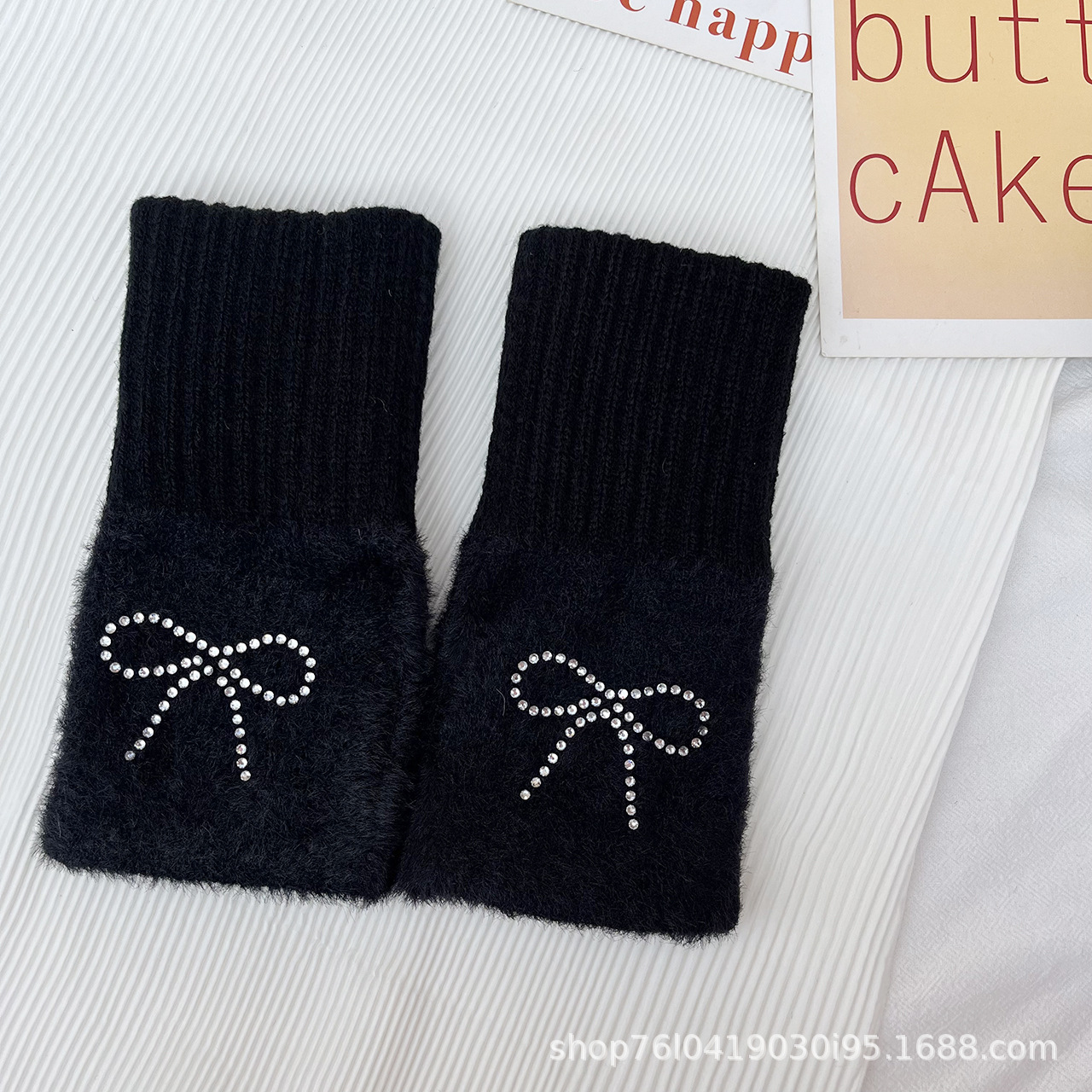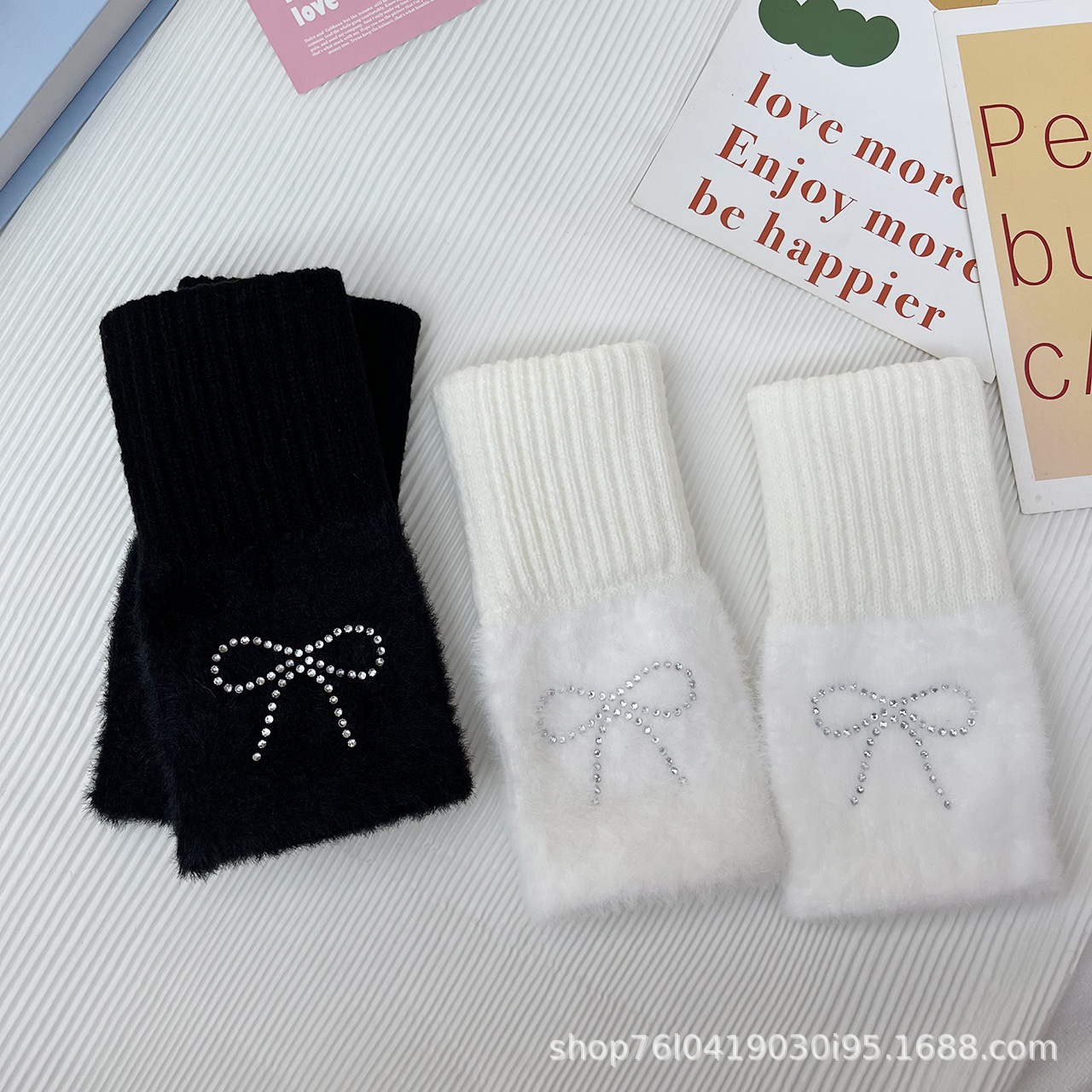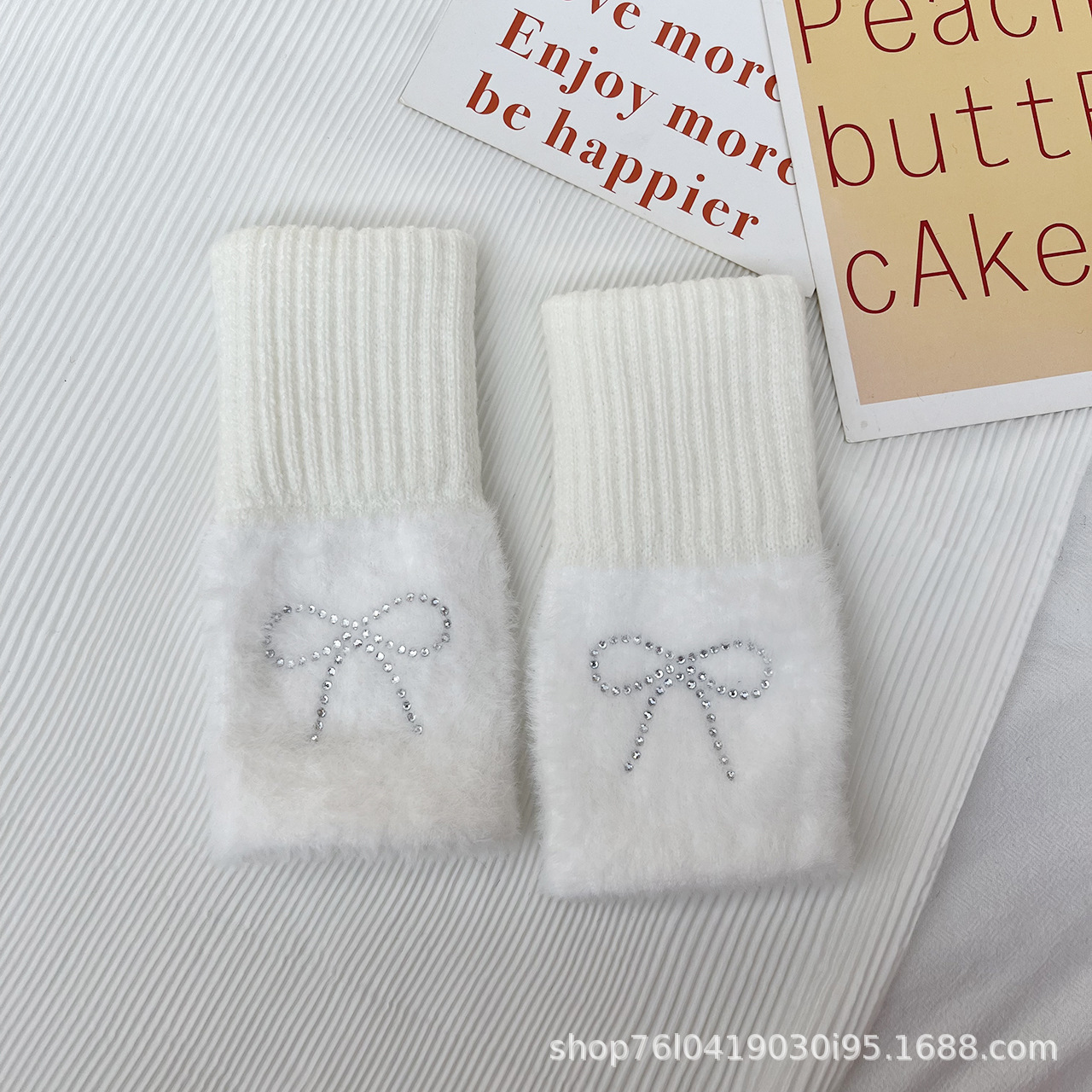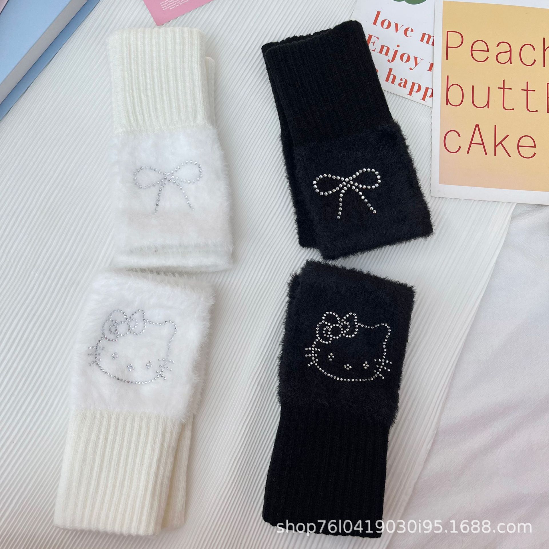 귀여운 만화 고양이 니트 반 손가락 장갑 여성의 겨울 봉제 두꺼운 따뜻한 손목 보호 학생 글쓰기 장갑스토어 가기