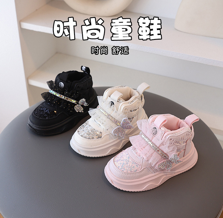 소녀 신발 크리스탈 나비 보드 신발 어린이 봄과 가을 운동화 패션 조커 재고 대외 무역