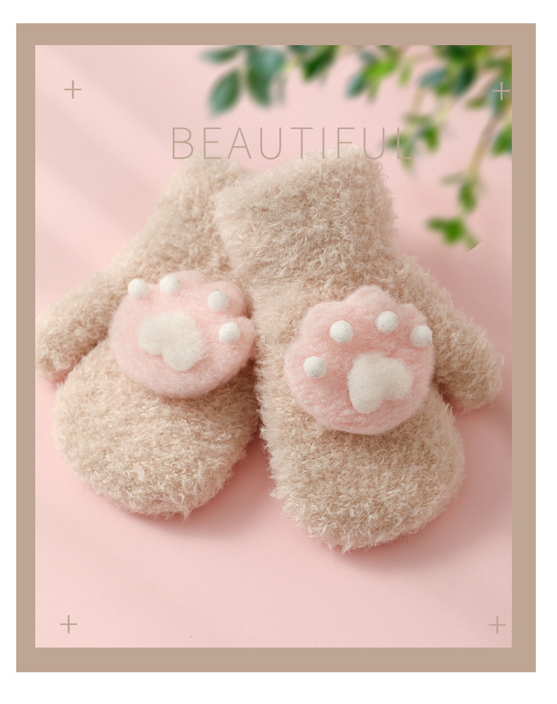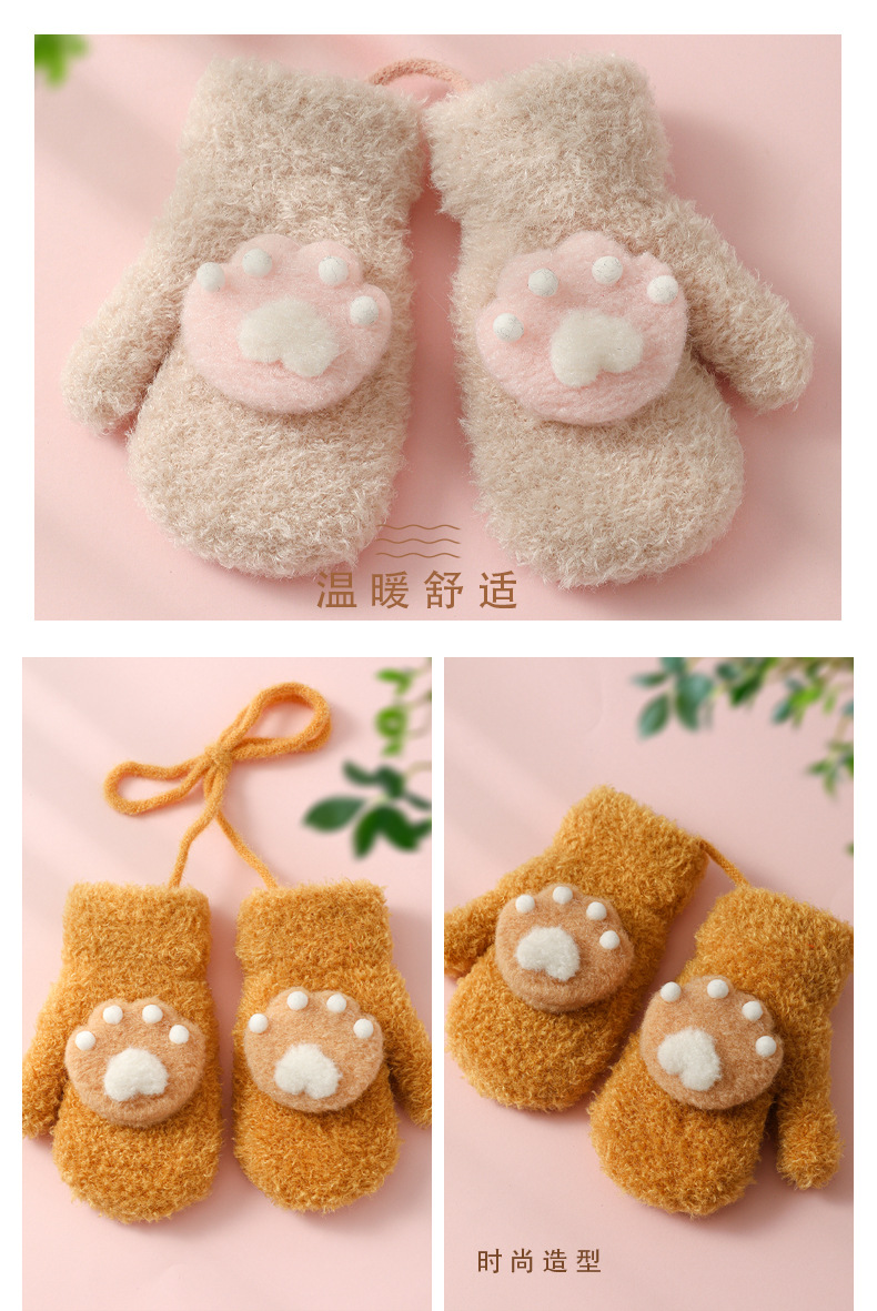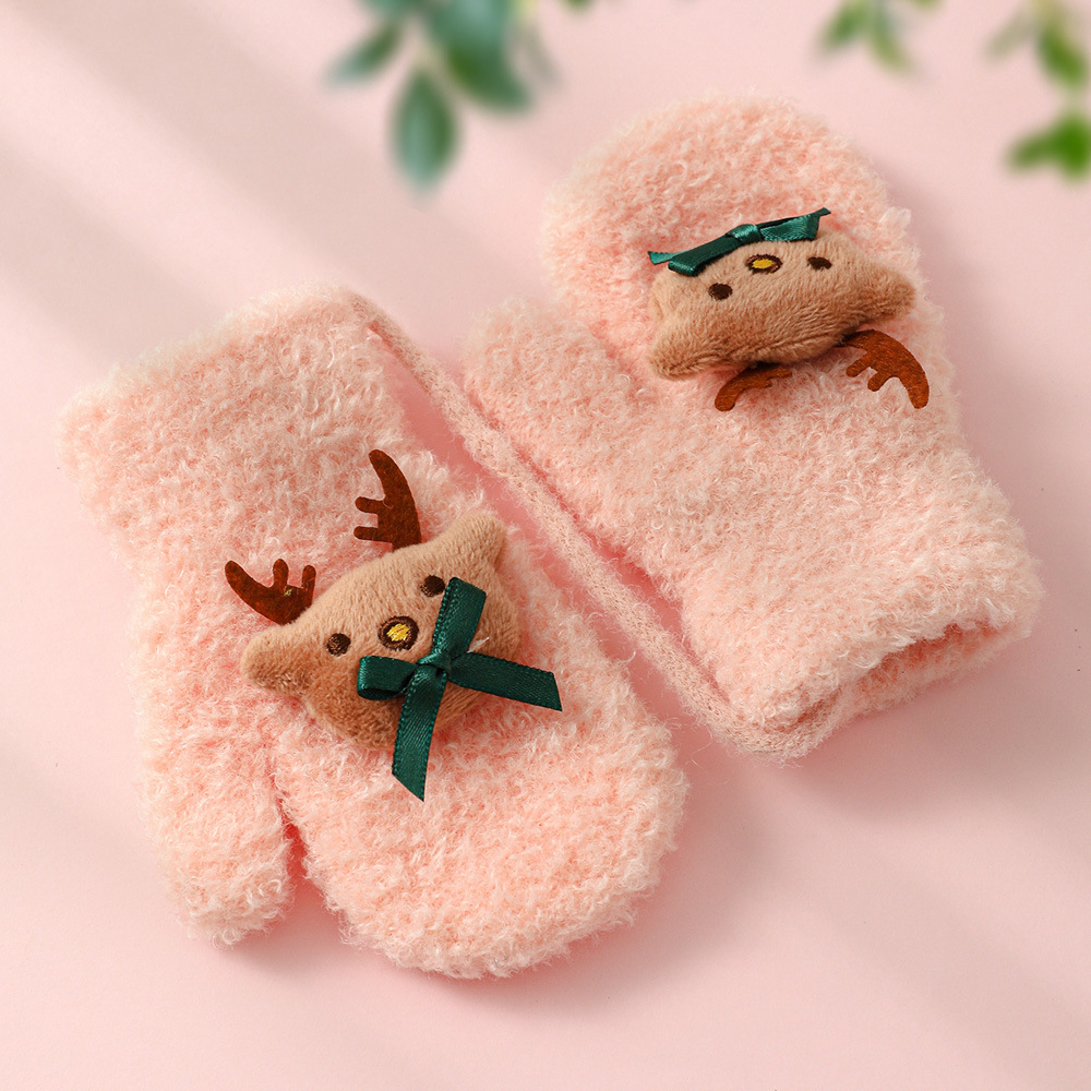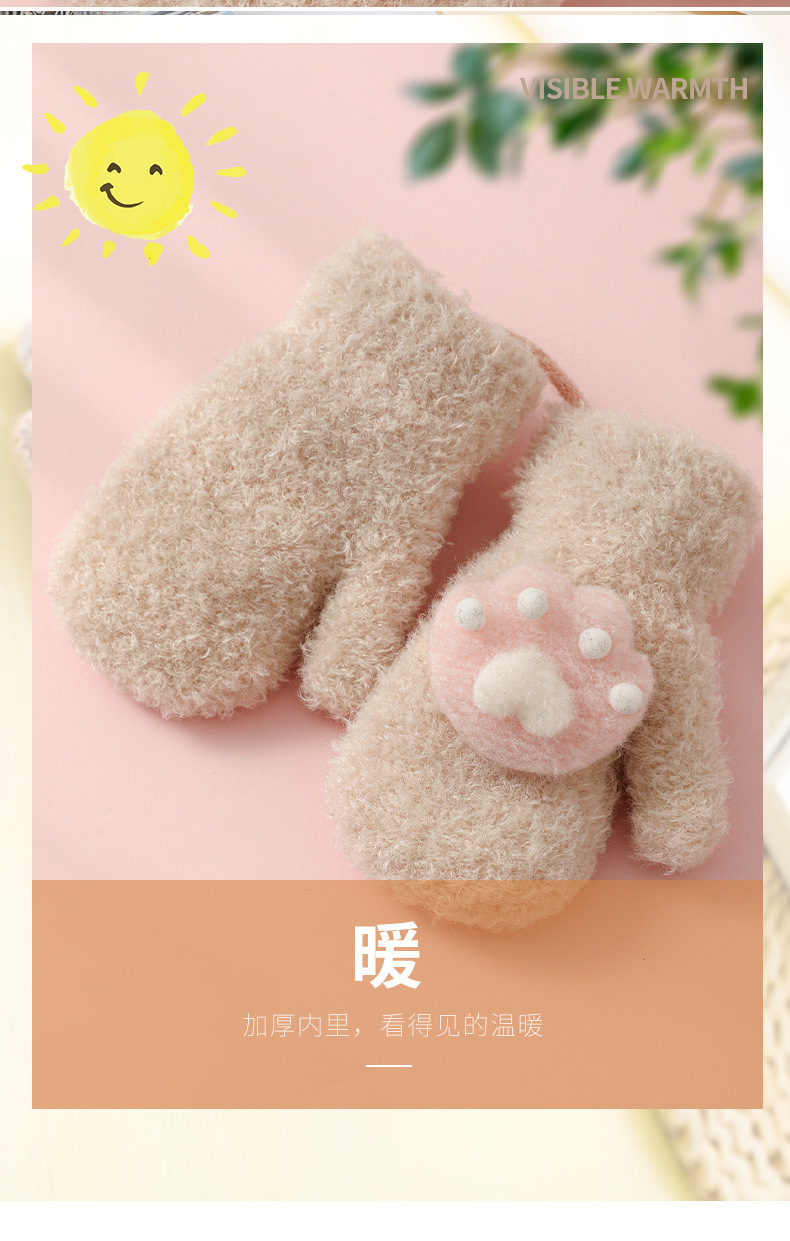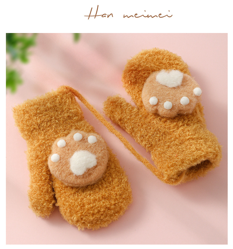 귀여운 기모 어린이 장갑 아기 겨울 겨울 소년 소녀를위한 추위 방지 따뜻한 모든 것을 포함하는 손가락 연결 장갑스토어 가기