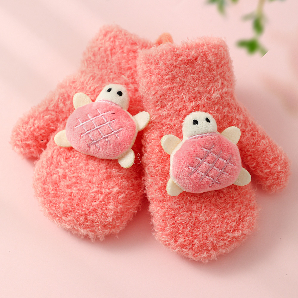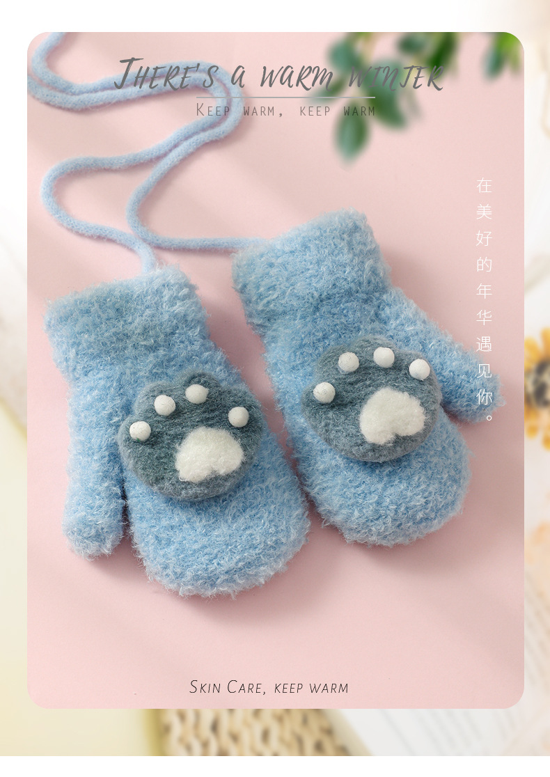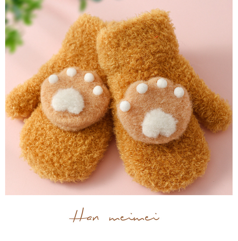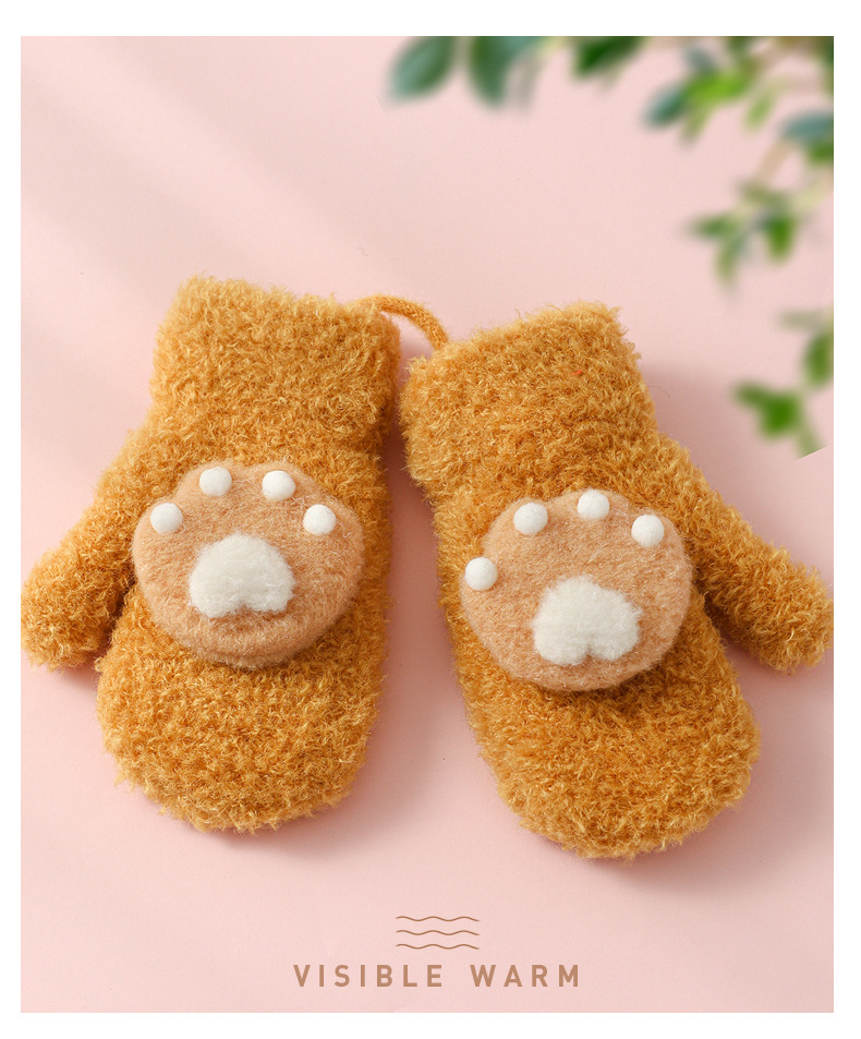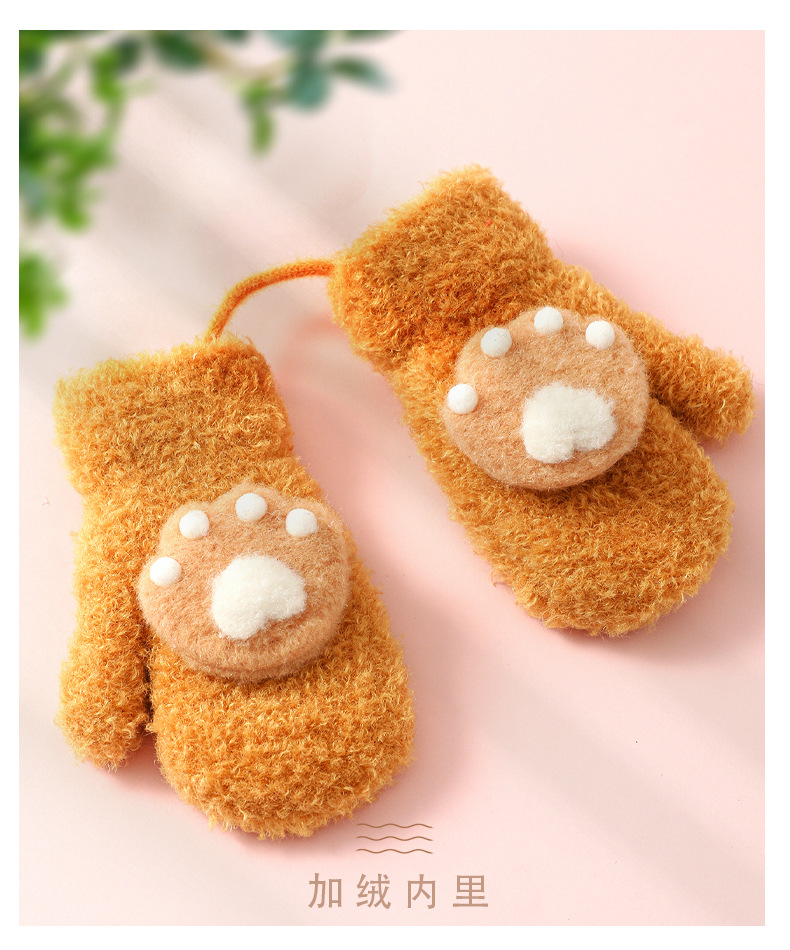 귀여운 기모 어린이 장갑 아기 겨울 겨울 소년 소녀를위한 추위 방지 따뜻한 모든 것을 포함하는 손가락 연결 장갑스토어 가기