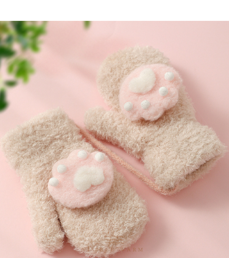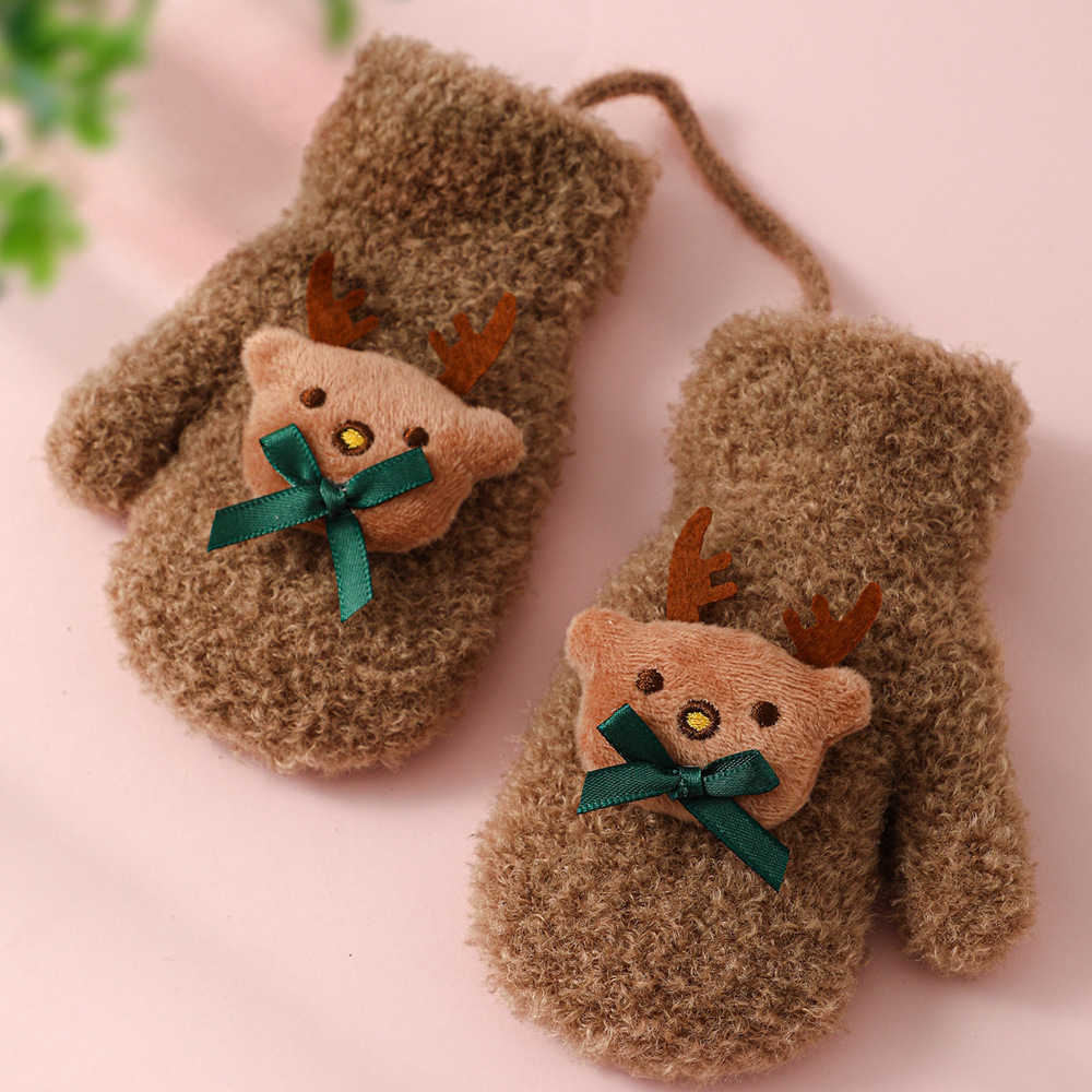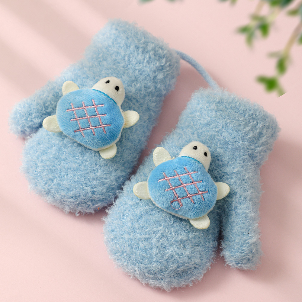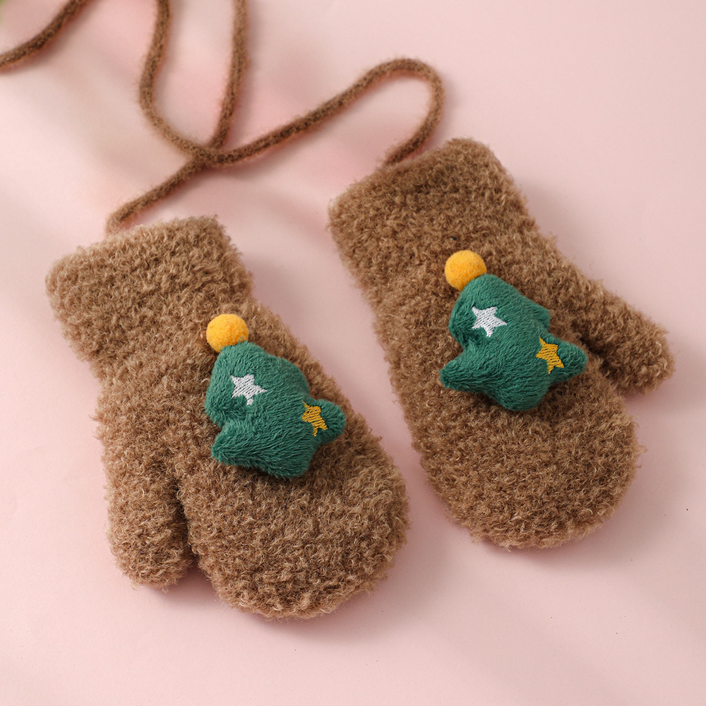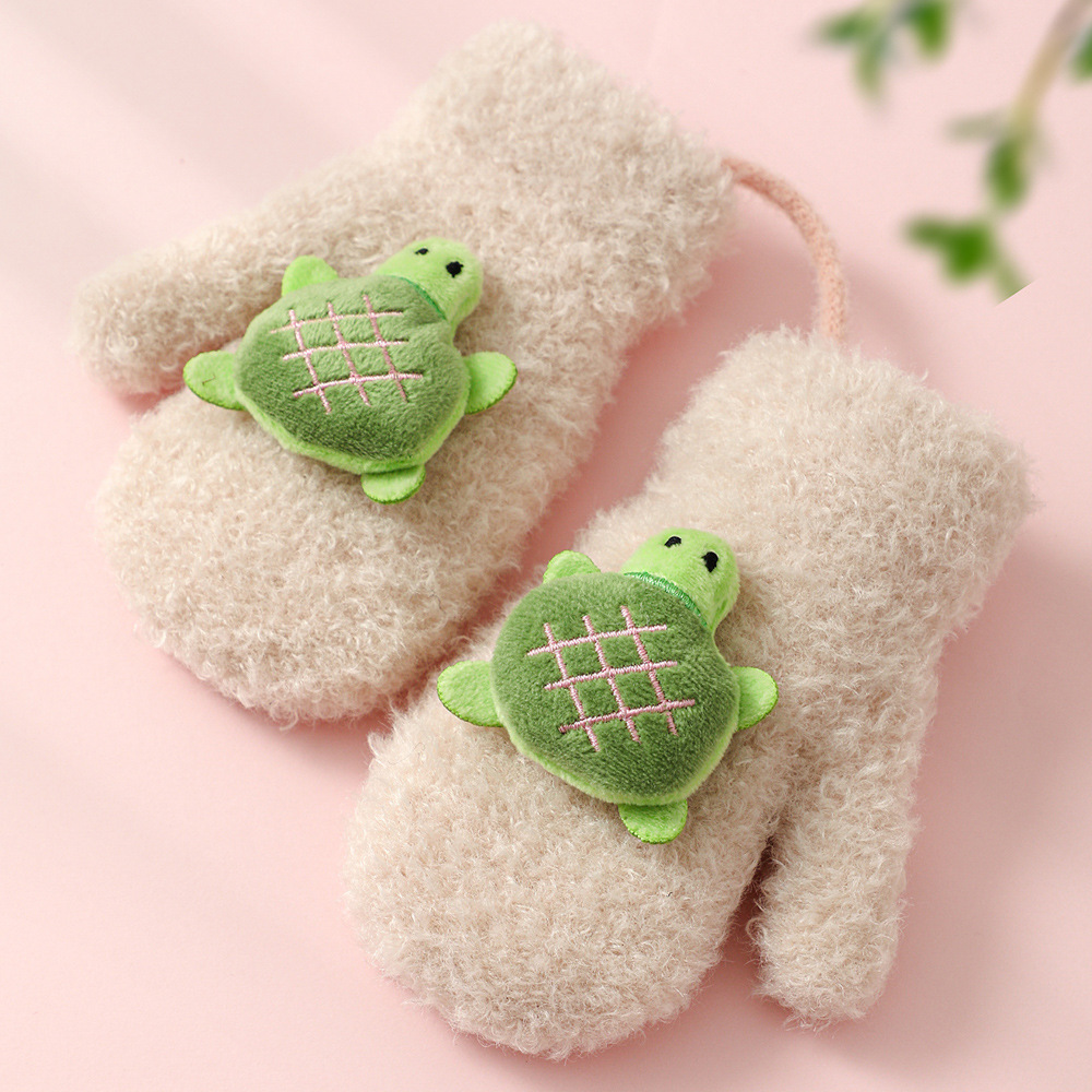 귀여운 기모 어린이 장갑 아기 겨울 겨울 소년 소녀를위한 추위 방지 따뜻한 모든 것을 포함하는 손가락 연결 장갑스토어 가기