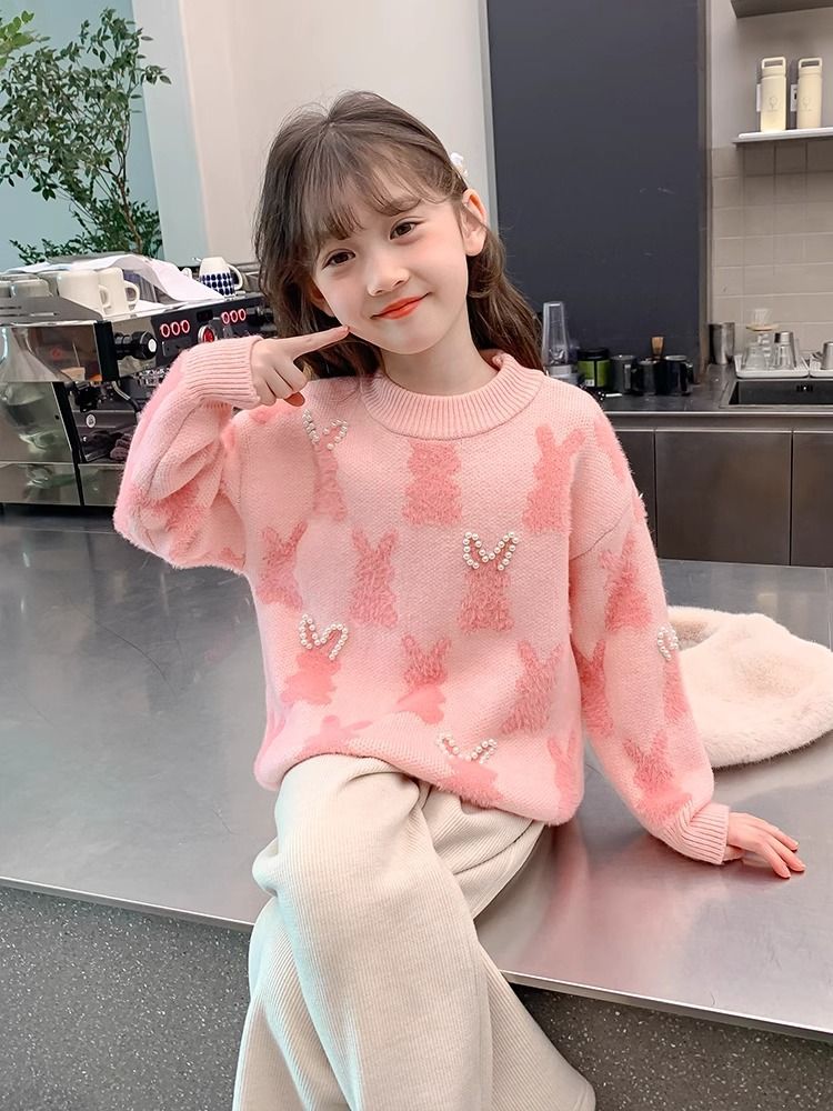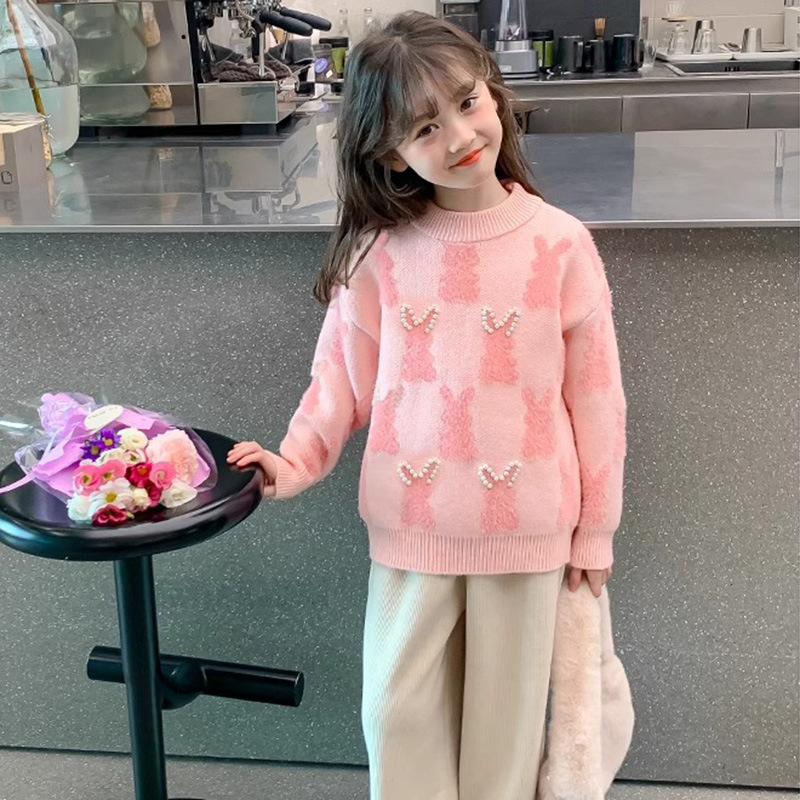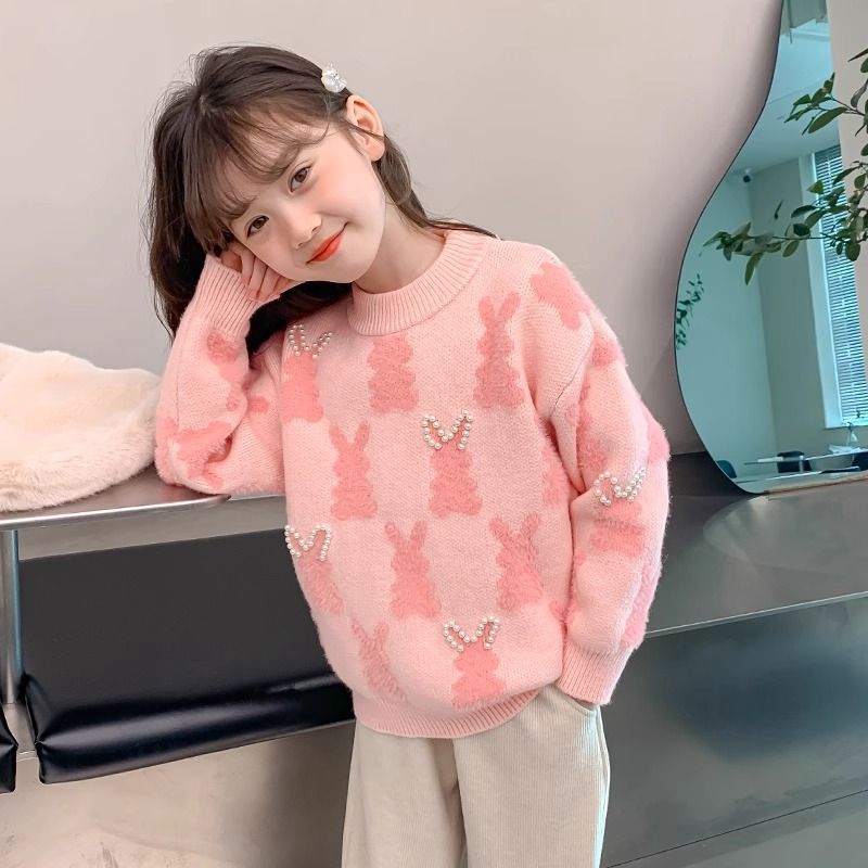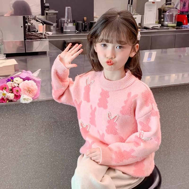 여아 니트 스웨터 가을 겨울 2025 신상 아동용 두꺼운 겨울 이너웨어 어린 소녀 스웨터 큰 아이들용스토어 가기