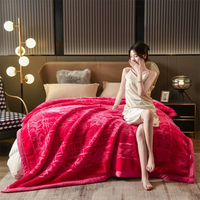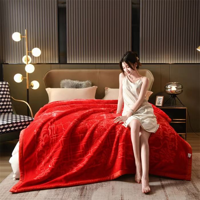 정품 담요 라셀 담요 10kg 두꺼운 3 층 겨울 담요 더블 웨딩 레드 산호 양털 점심 담요스토어 가기