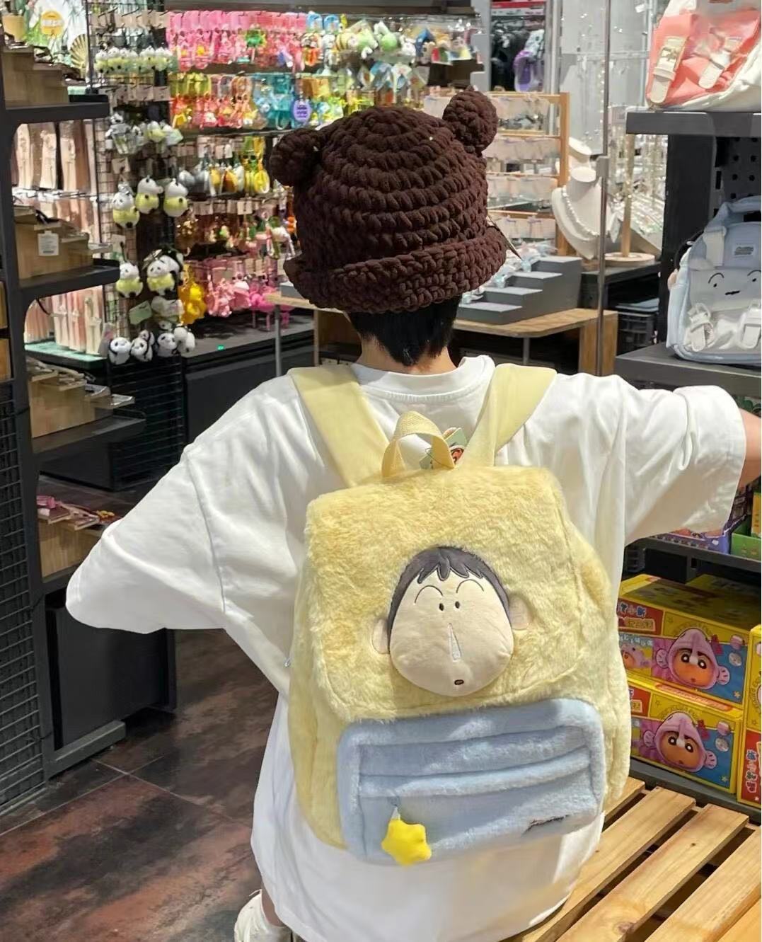 만화 크레용 작은 새 배낭 슈퍼 귀여운 멍청한 봉제 배낭 학생 학교 통근 학교 나들이 가방스토어 가기
