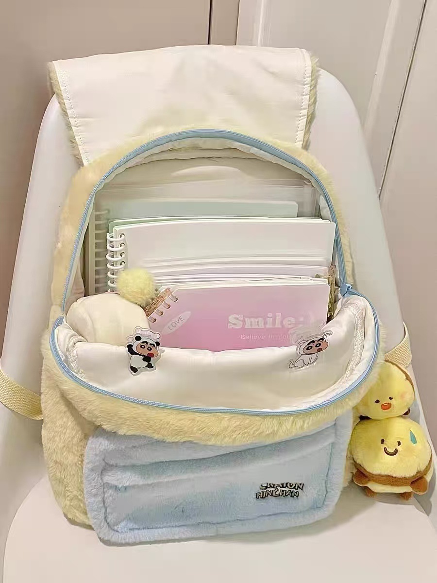만화 크레용 작은 새 배낭 슈퍼 귀여운 멍청한 봉제 배낭 학생 학교 통근 학교 나들이 가방