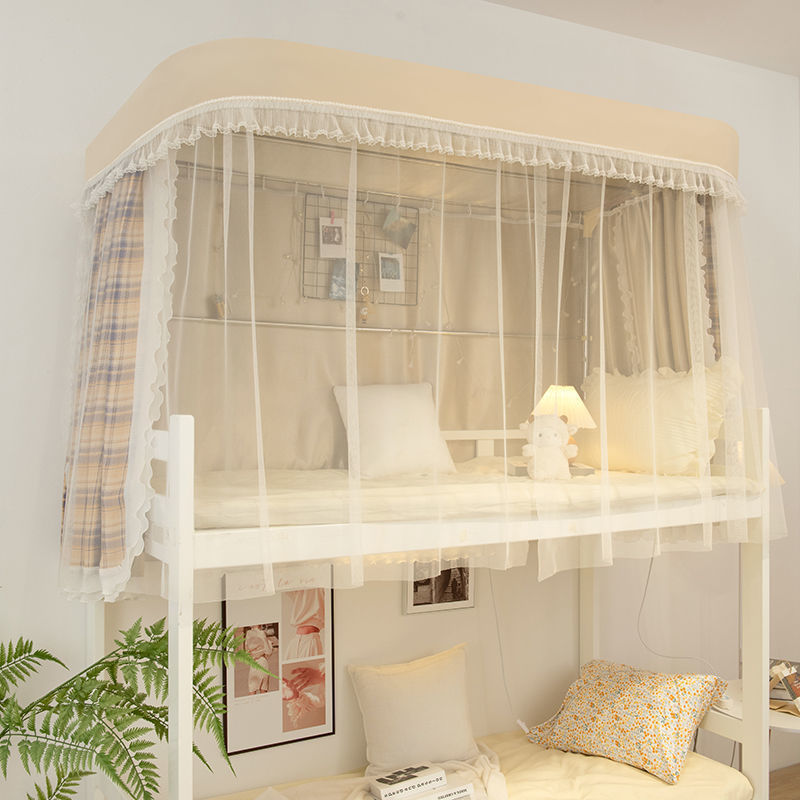 95% 강한 음영 학생 기숙사 공주 바람 상부 스프레드 타입 슬라이드 트랙 커튼 커튼 모기장 브래킷이있는 통합 침대 커튼스토어 가기
