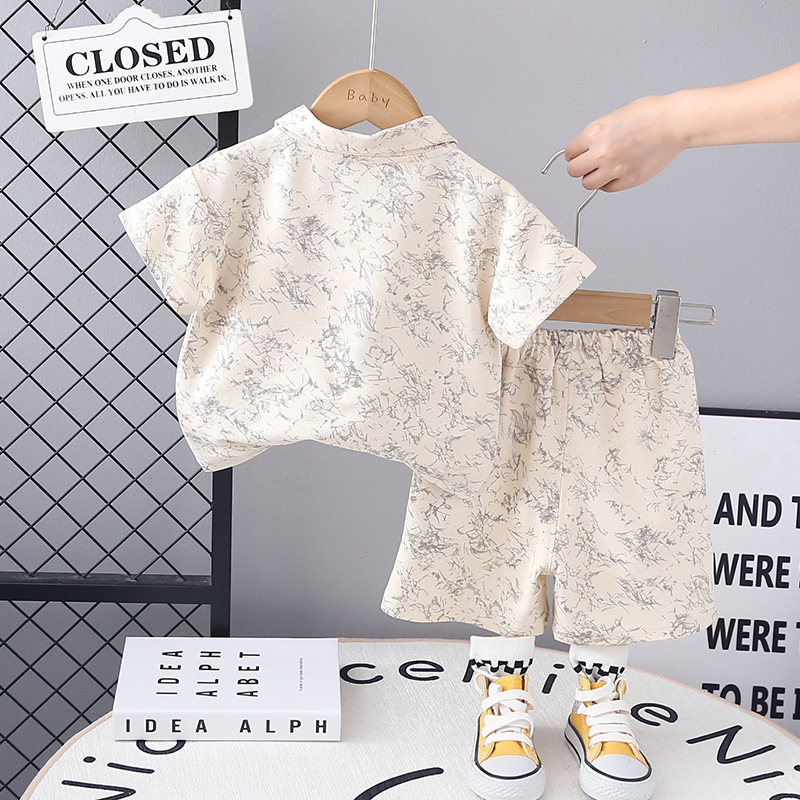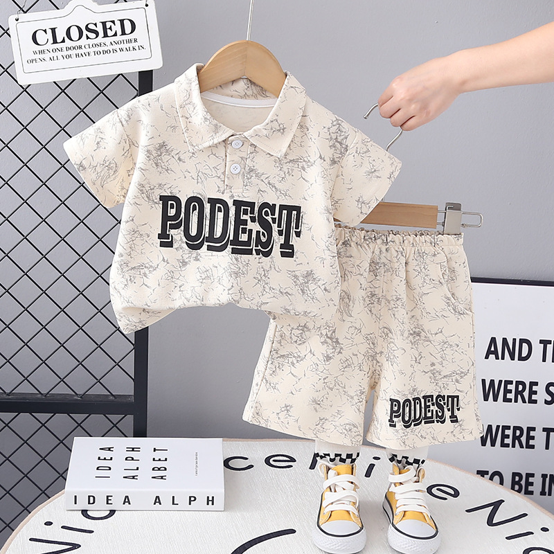여름 새로운 어린 시절 잘 생긴 소년 반팔 세트 어린이 편지 인쇄 캐주얼 티셔츠 세트 투피스 트렌디스토어 가기