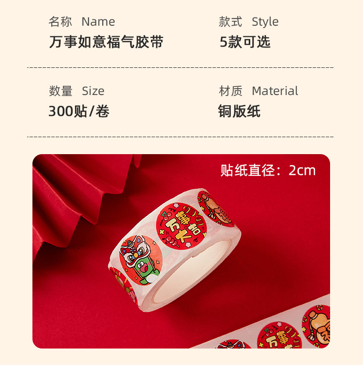 모든 것이 잘되다 테이프 2026년 설날 장식 스티커 핸드북 봉투 봉인 스티커 초등학생 설날 스티커