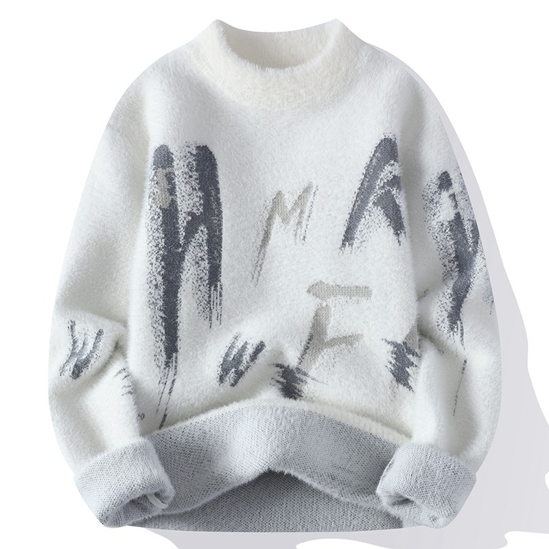 겨울 기모 밍크 벨벳 스웨터 남자 십대 패션 따뜻한 베이스 셔츠 학생 슬림 핏 모의 높은 칼라 스웨터스토어 가기
