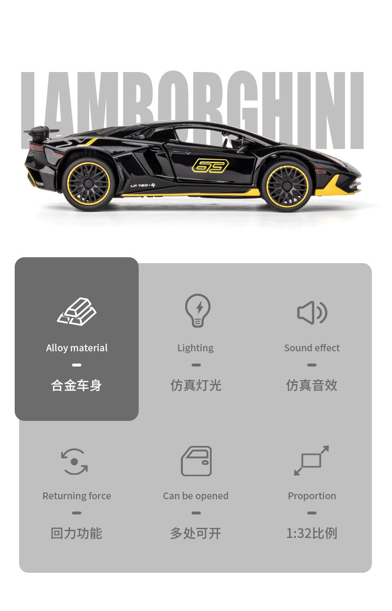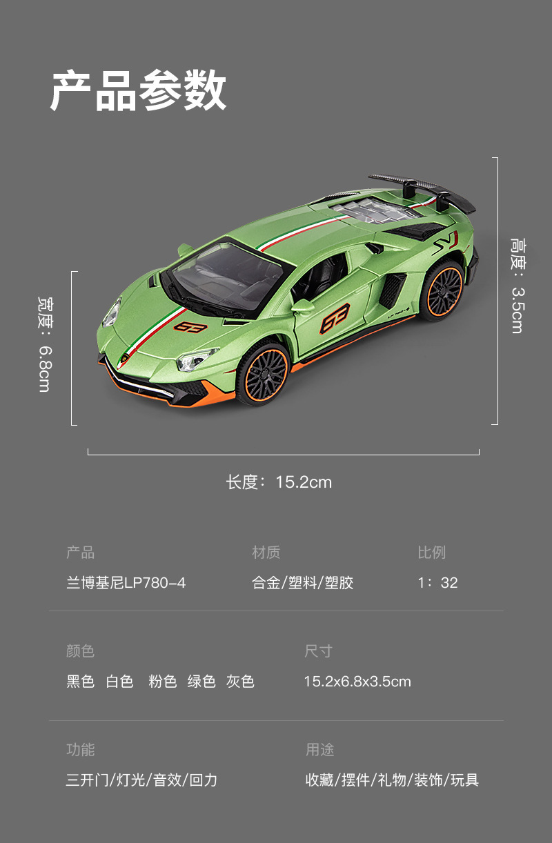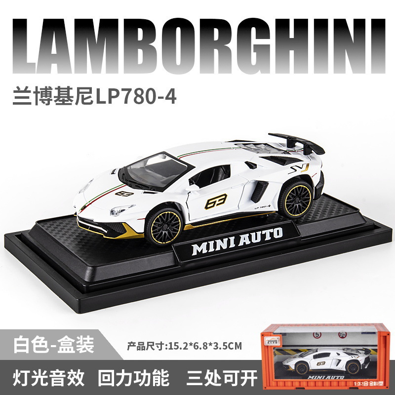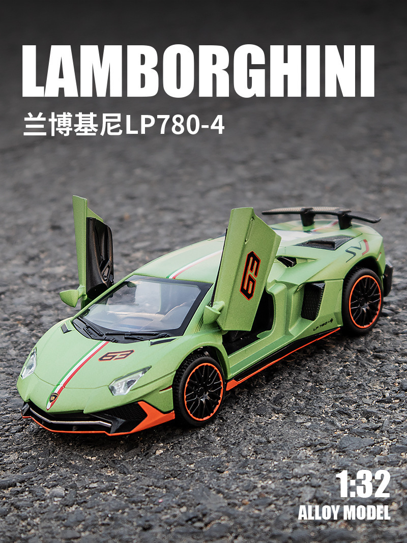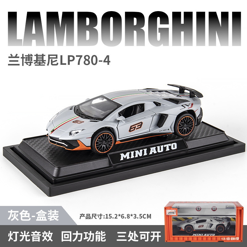 1:32 Rambo lp780 럭셔리카 로고 합금 자동차 모델 소리와 가벼운 어린이 장난감 럭셔리카 로고 청해 도매 블라인드 박스 떨림