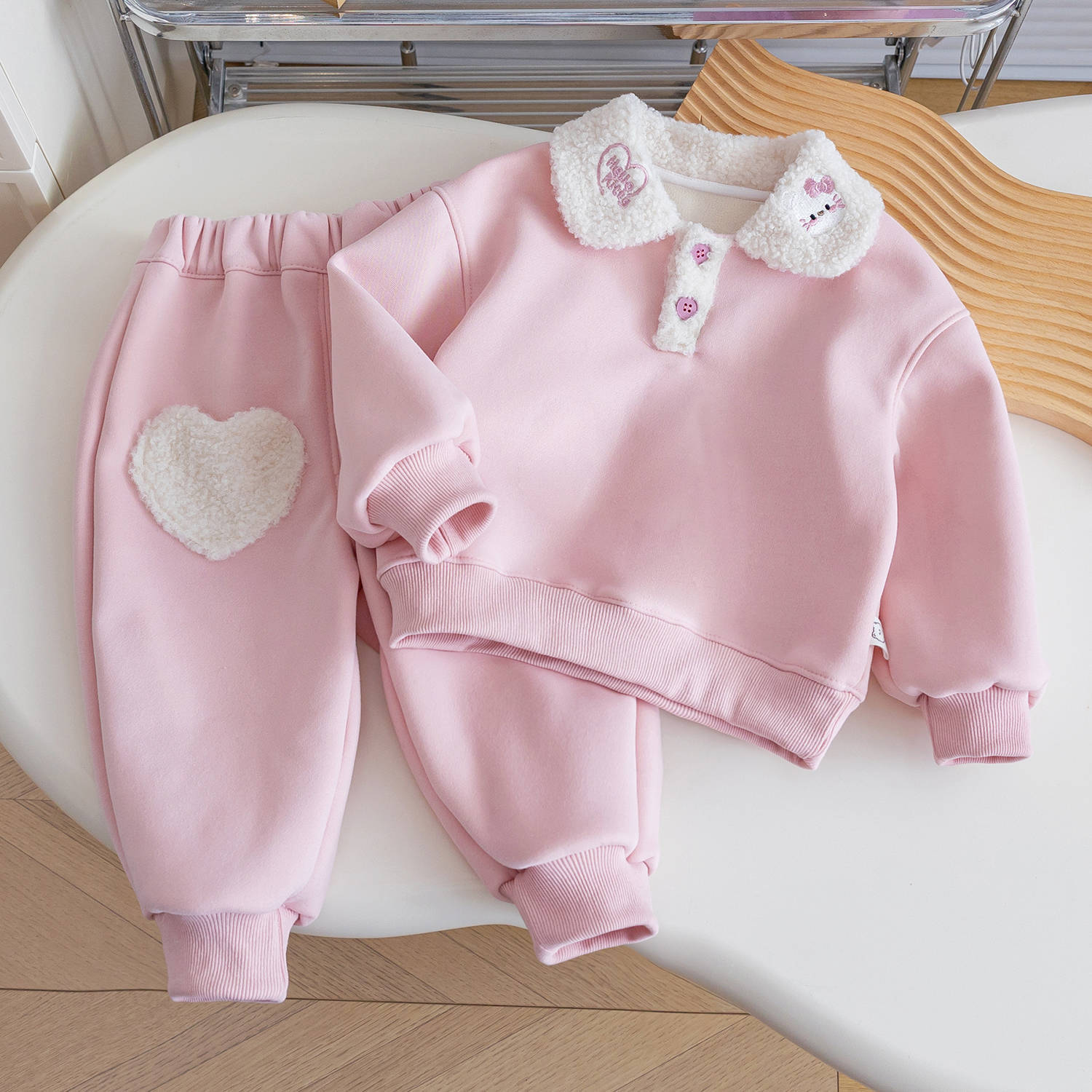 2025년 겨울 여아용 두꺼운 일체형 벨벳 만화 캐릭터 스웨트셔츠와 스웨트팬츠 세트, 여자 아기 캐주얼 스포츠 투피스 세트, 트렌디스토어 가기
