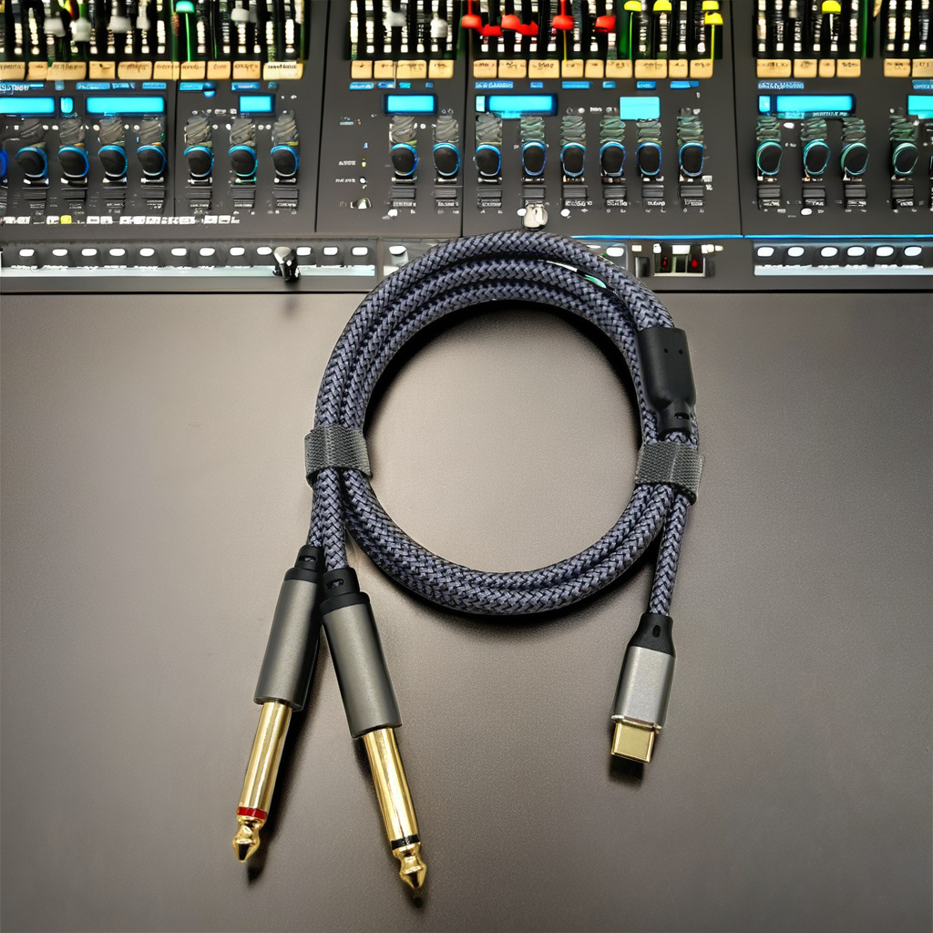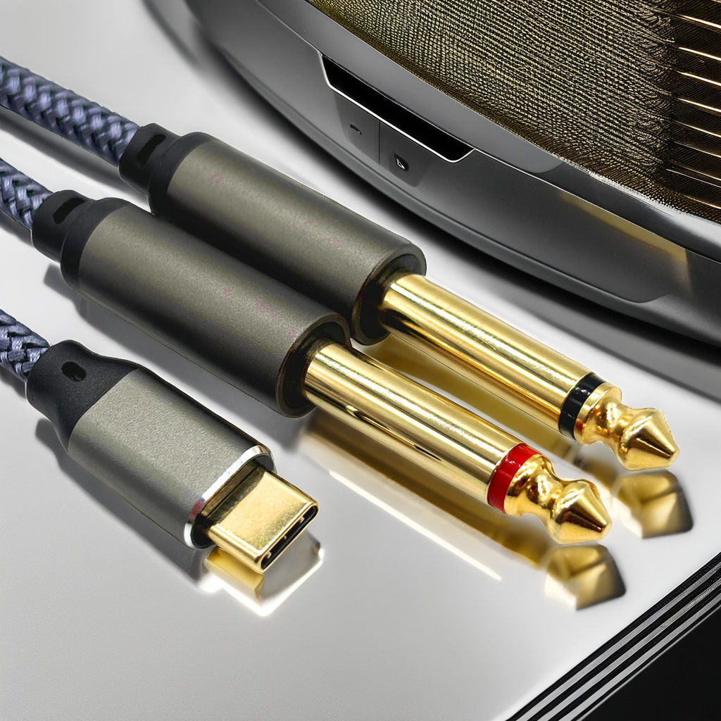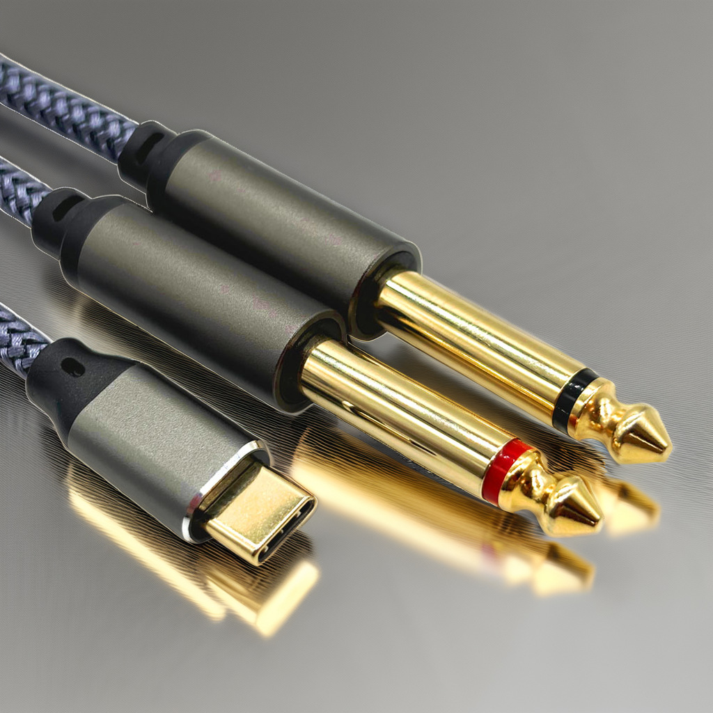 USB C 헤드 디코딩 칩 TYPE-C 남성 헤드 더블 6.35 대형 2 코어 믹서 전력 증폭기 스피커 케이블스토어 가기