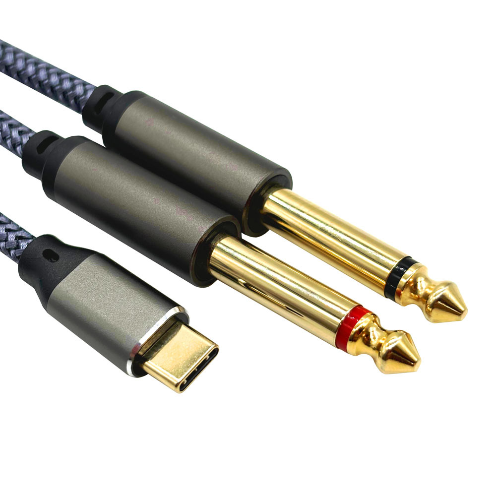 USB C 헤드 디코딩 칩 TYPE-C 남성 헤드 더블 6.35 대형 2 코어 믹서 전력 증폭기 스피커 케이블