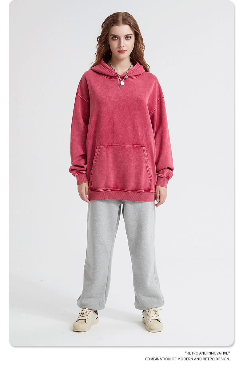 2024 가을과 겨울 미국 워시 올드 원피스 여성 420g 후디 크루 넥 재킷 커플 원피스 바틱 착용스토어 가기
