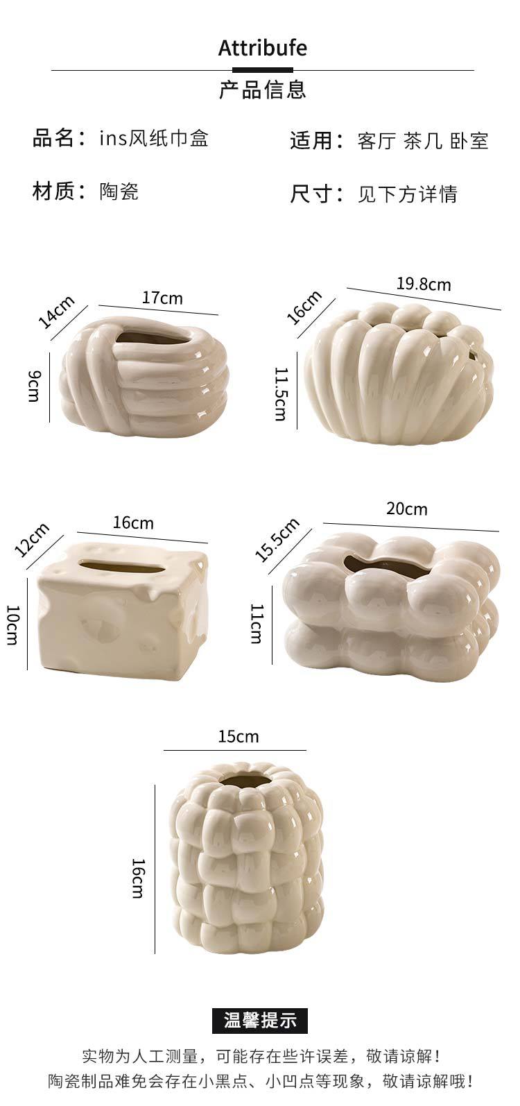 세라믹 티슈 박스 마시멜로 클라우드 라이트 럭셔리 스타일 홈 상업용 거실 침실 데스크탑 티슈 박스 장식품