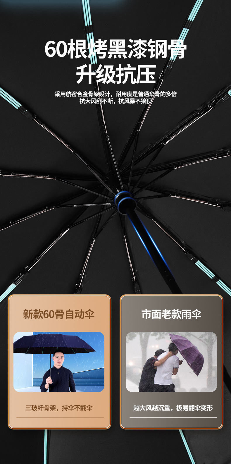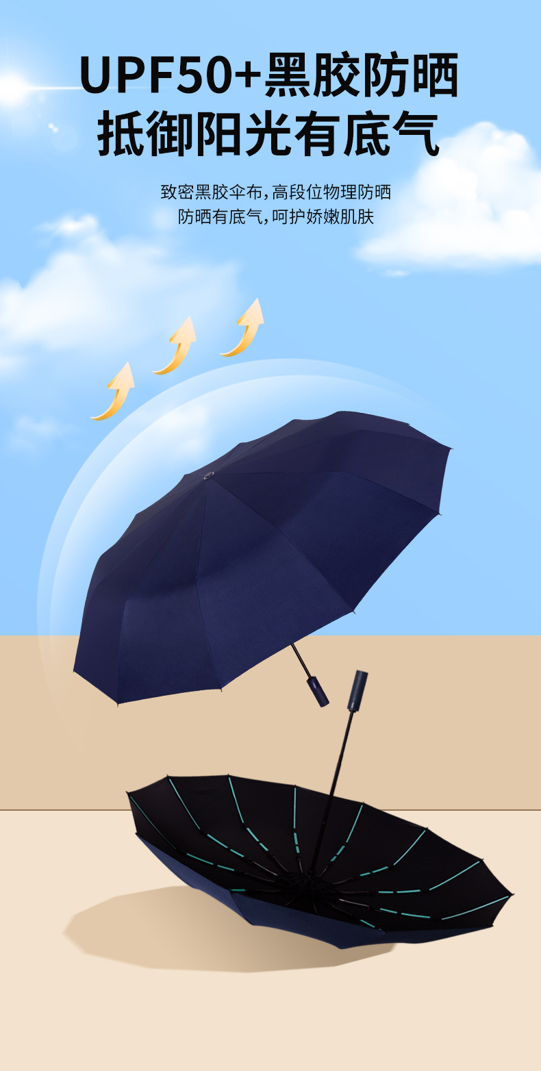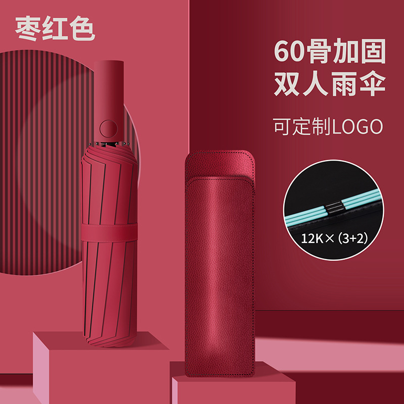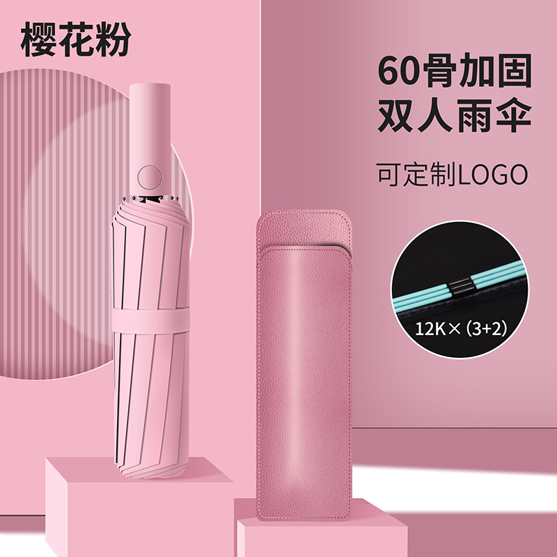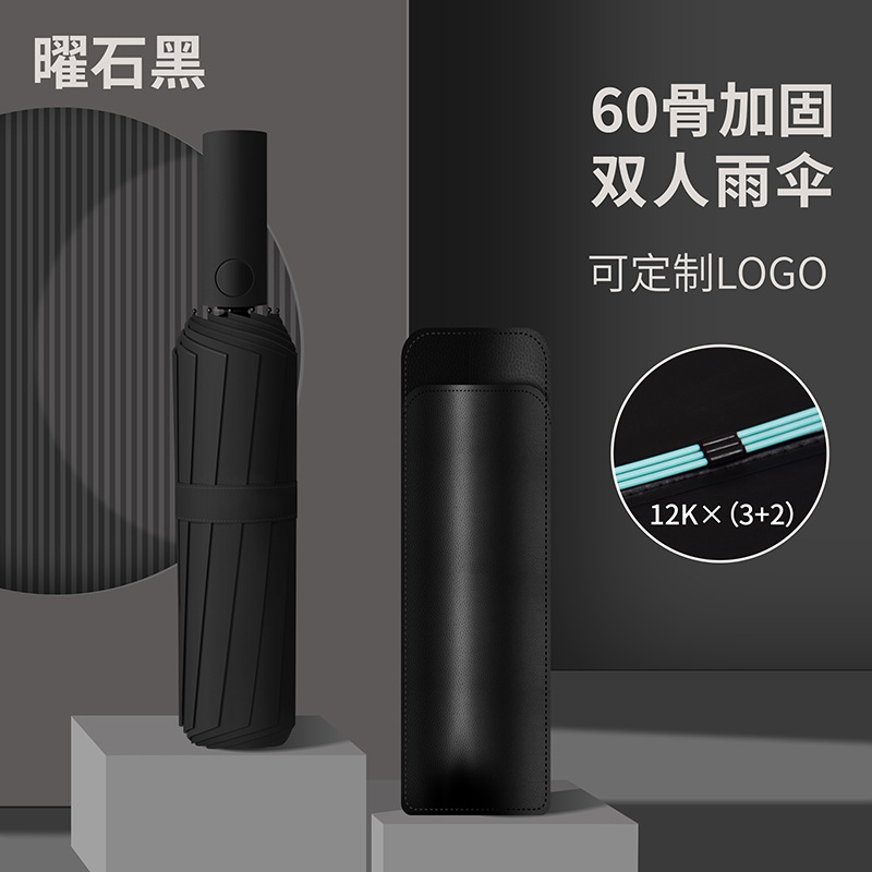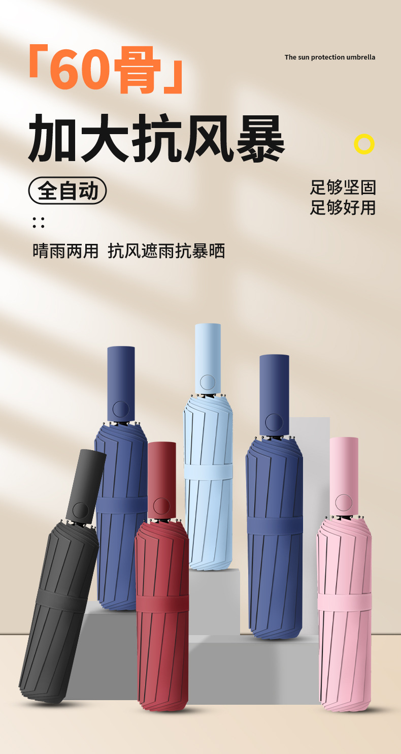 60 뼈 자동 우산 대형 두꺼운 강화 검은 고무 선 스크린 우산 접이식 우산 고급 감각 우산 사용자 정의