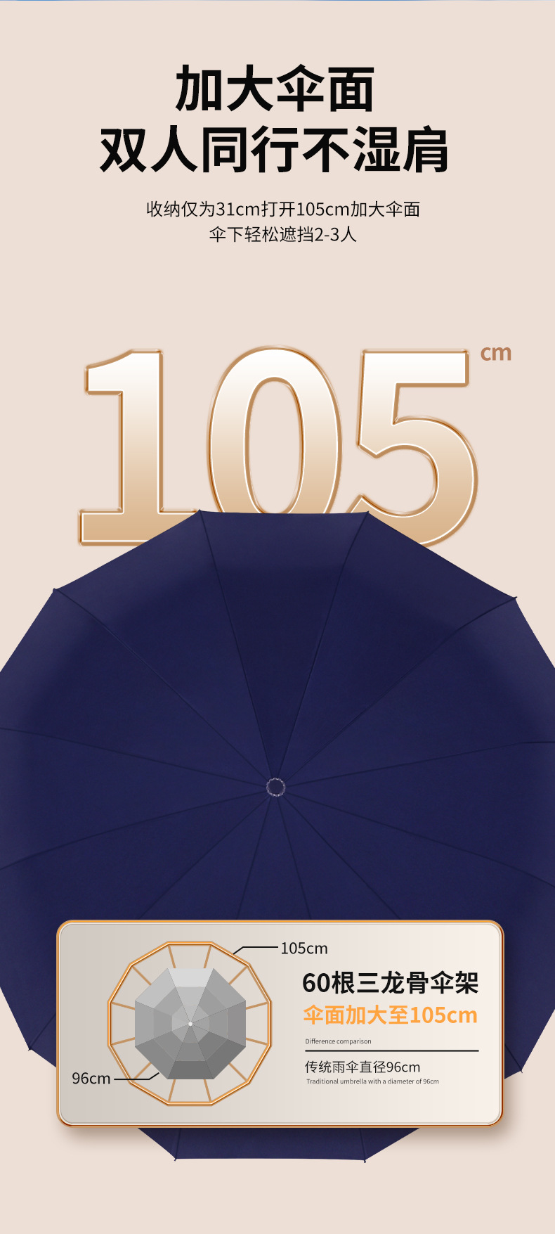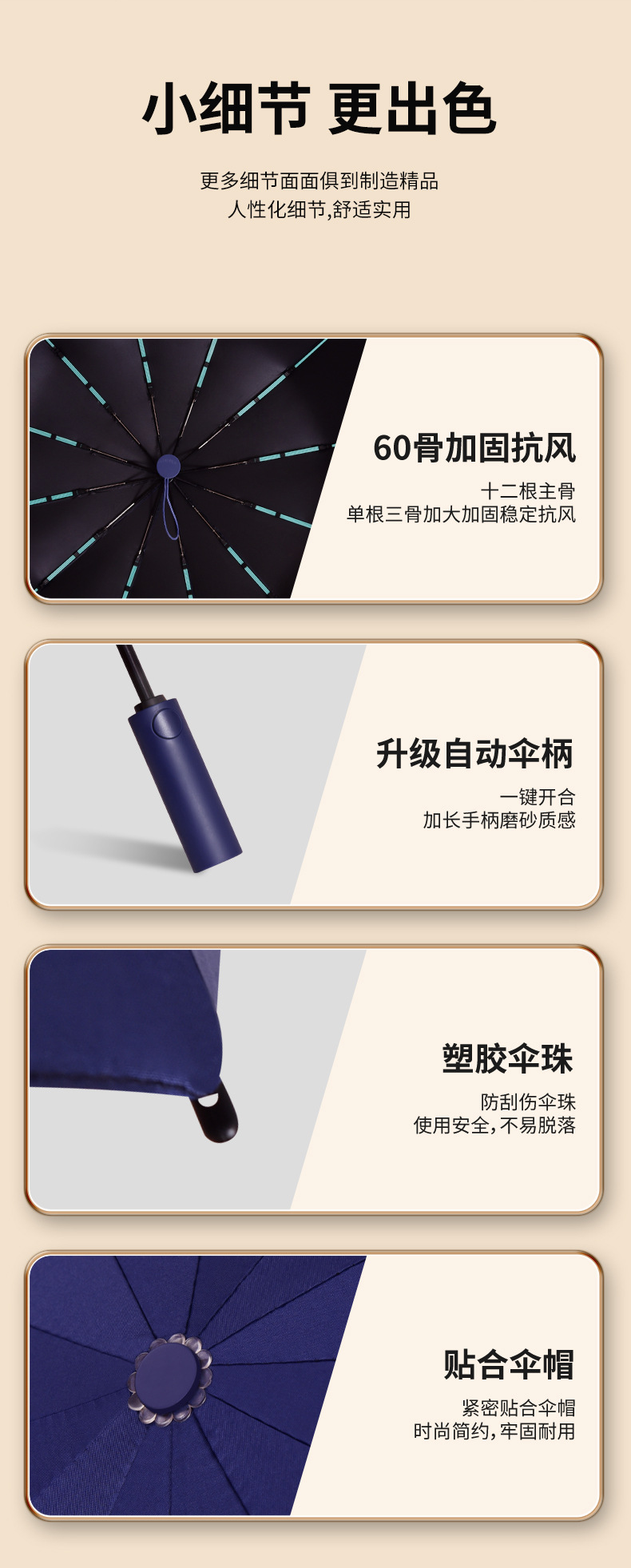 • [자동 개폐] 킬 60개 - 네이비 블루(비가 오나 눈이 오나 사용 가능)