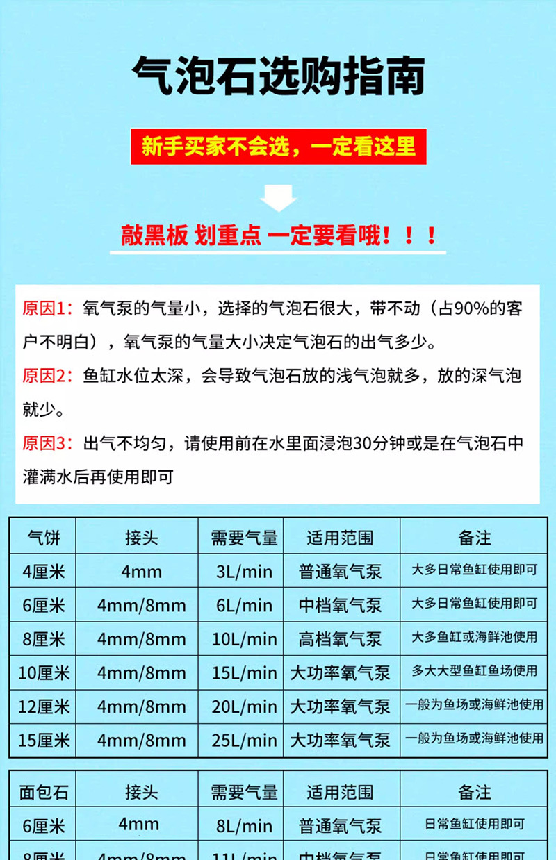 鱼缸气泡石纳米气盘增氧泵气头气饼沙盘增氧气石气泡石水族箱爆氧
