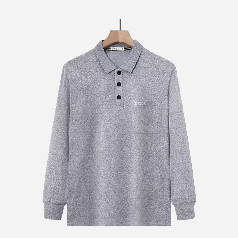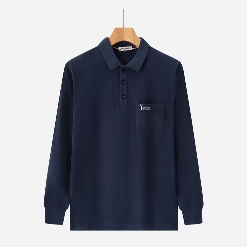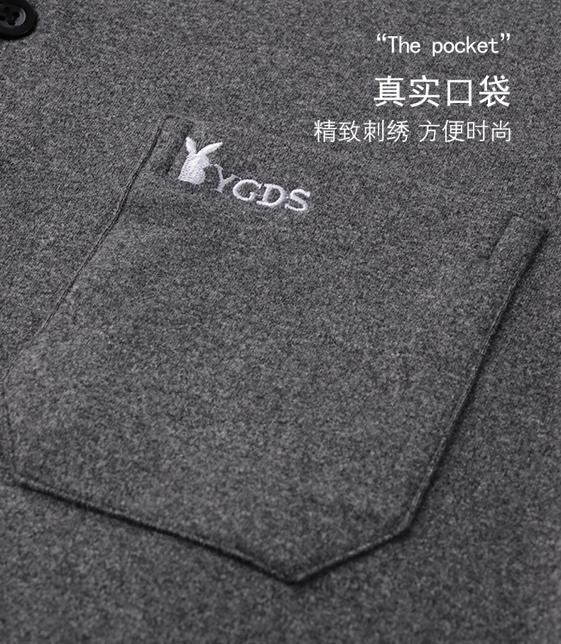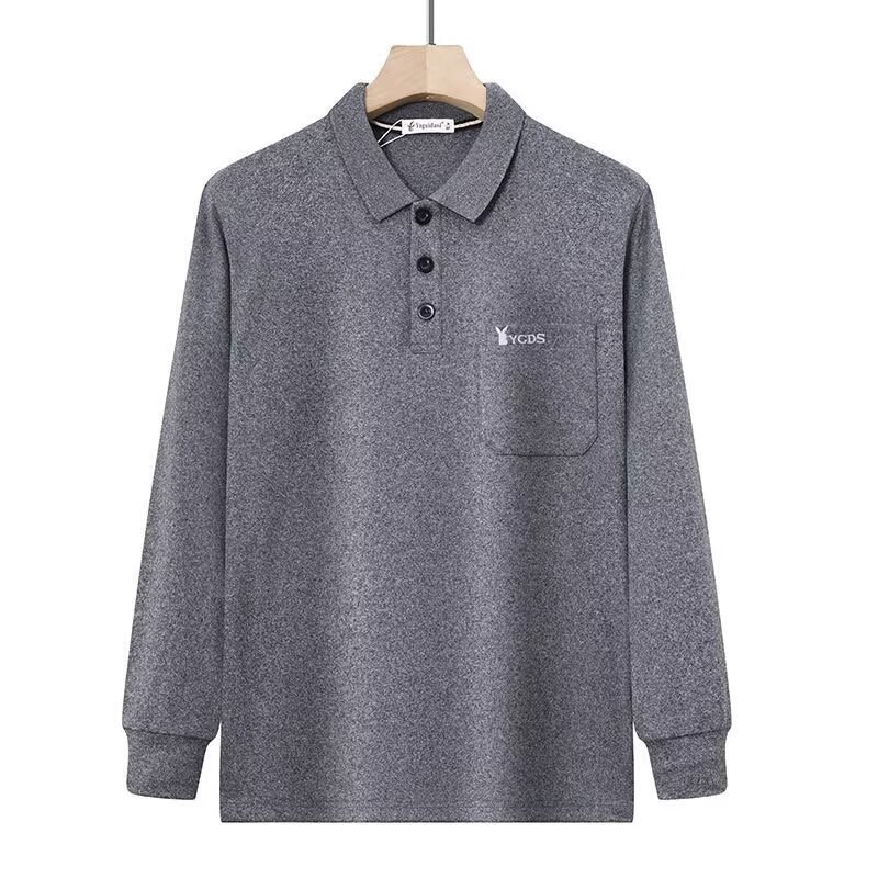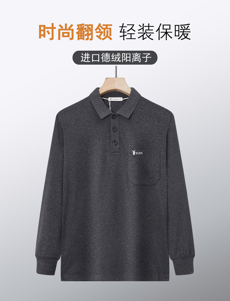 가을과 겨울 남자 양털 양면 양털 긴팔 옷깃 포켓 티셔츠 젊고 중년의 단색 폴로 셔츠 따뜻한 탑스토어 가기