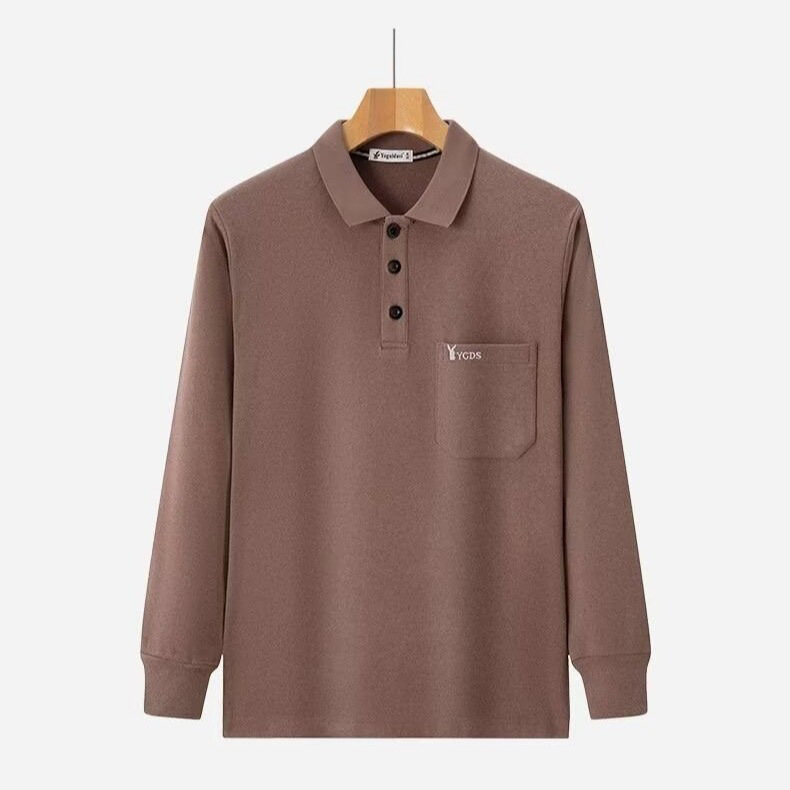 가을과 겨울 남자 양털 양면 양털 긴팔 옷깃 포켓 티셔츠 젊고 중년의 단색 폴로 셔츠 따뜻한 탑