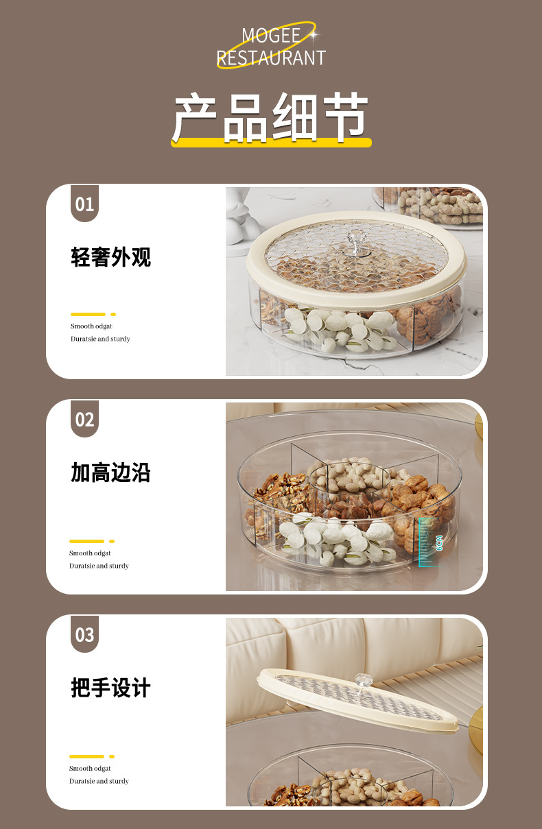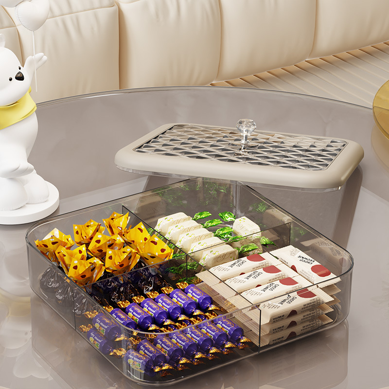 새로운 투명한 빛 고급 과일 트레이 홈 거실 용 뚜껑 대용량 사탕 상자 간식 말린 과일 저장 상자