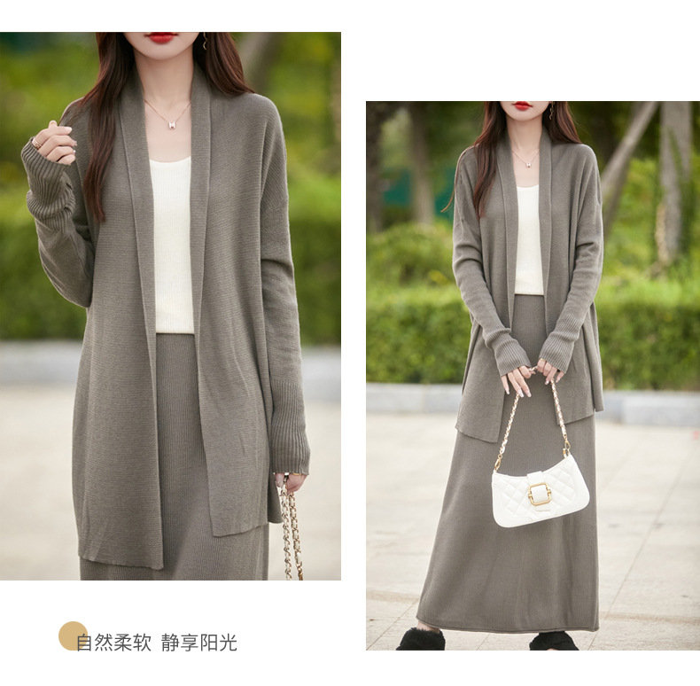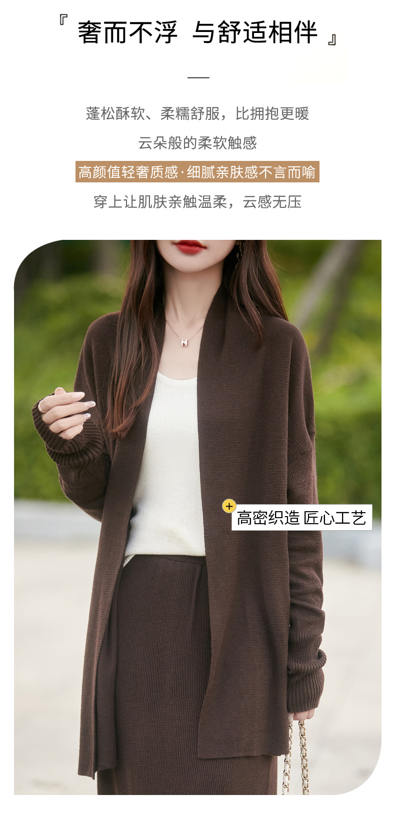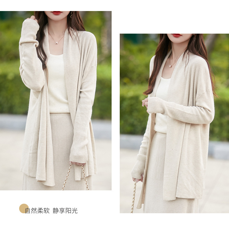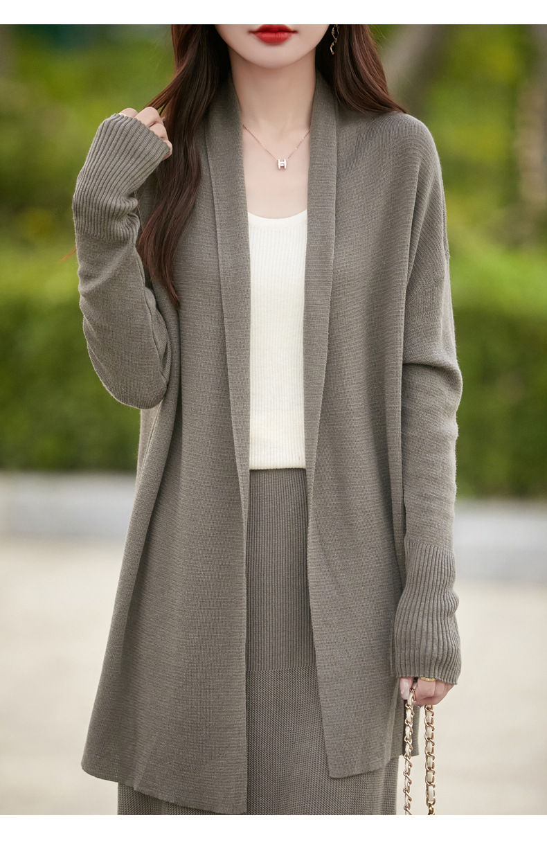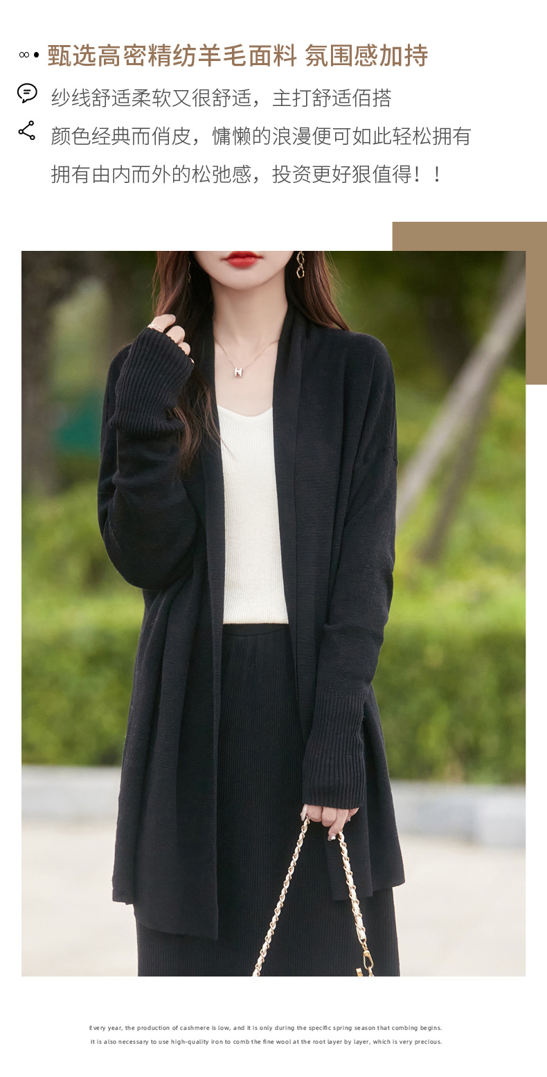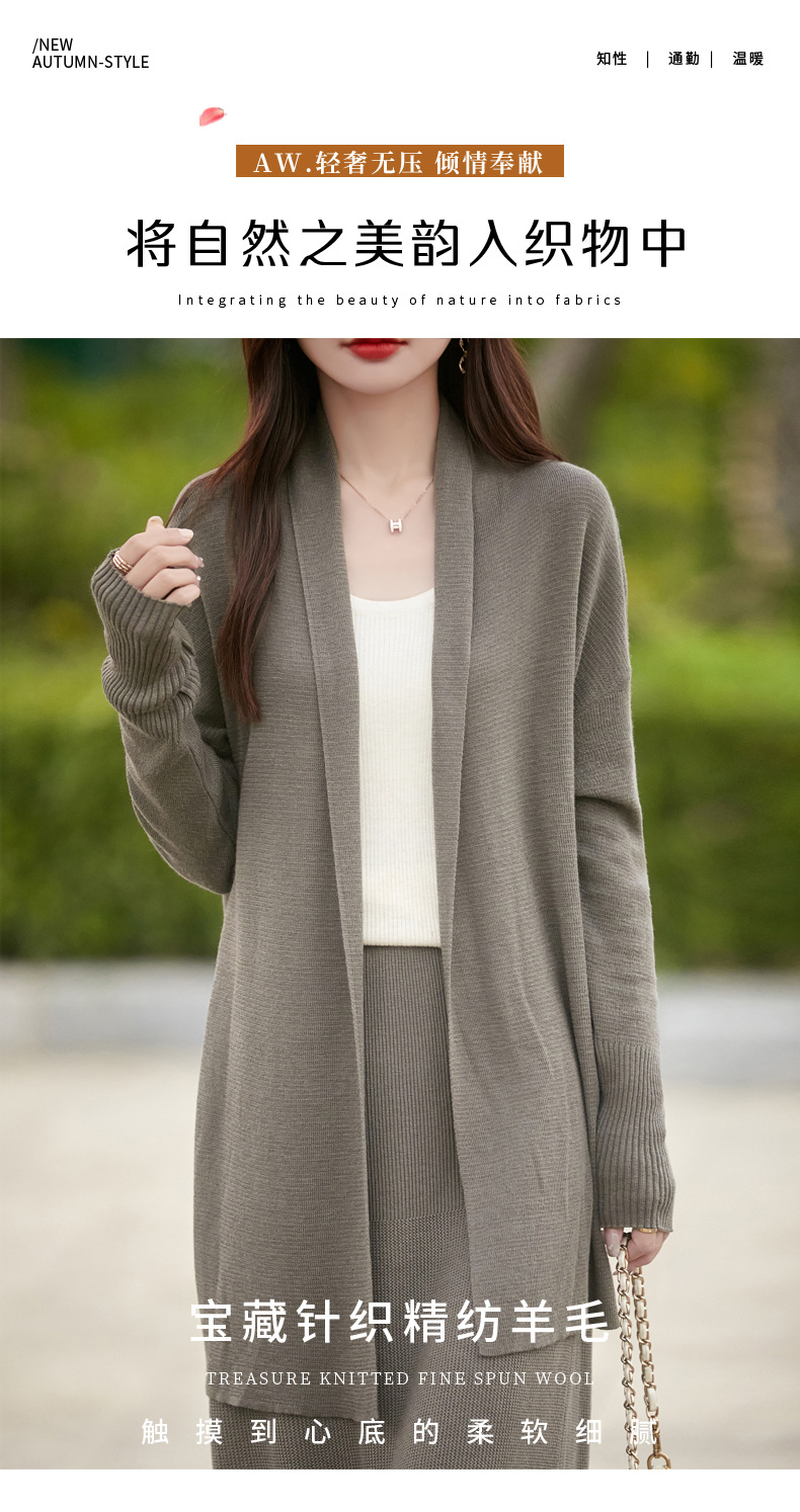 새로운 중간 길이의 루즈핏 니트 가디건, 캐주얼하고 세련된 버튼 없는 긴팔 울 코트