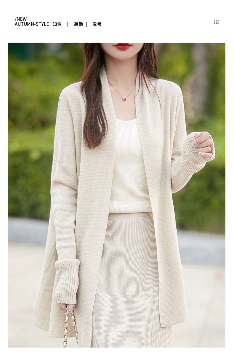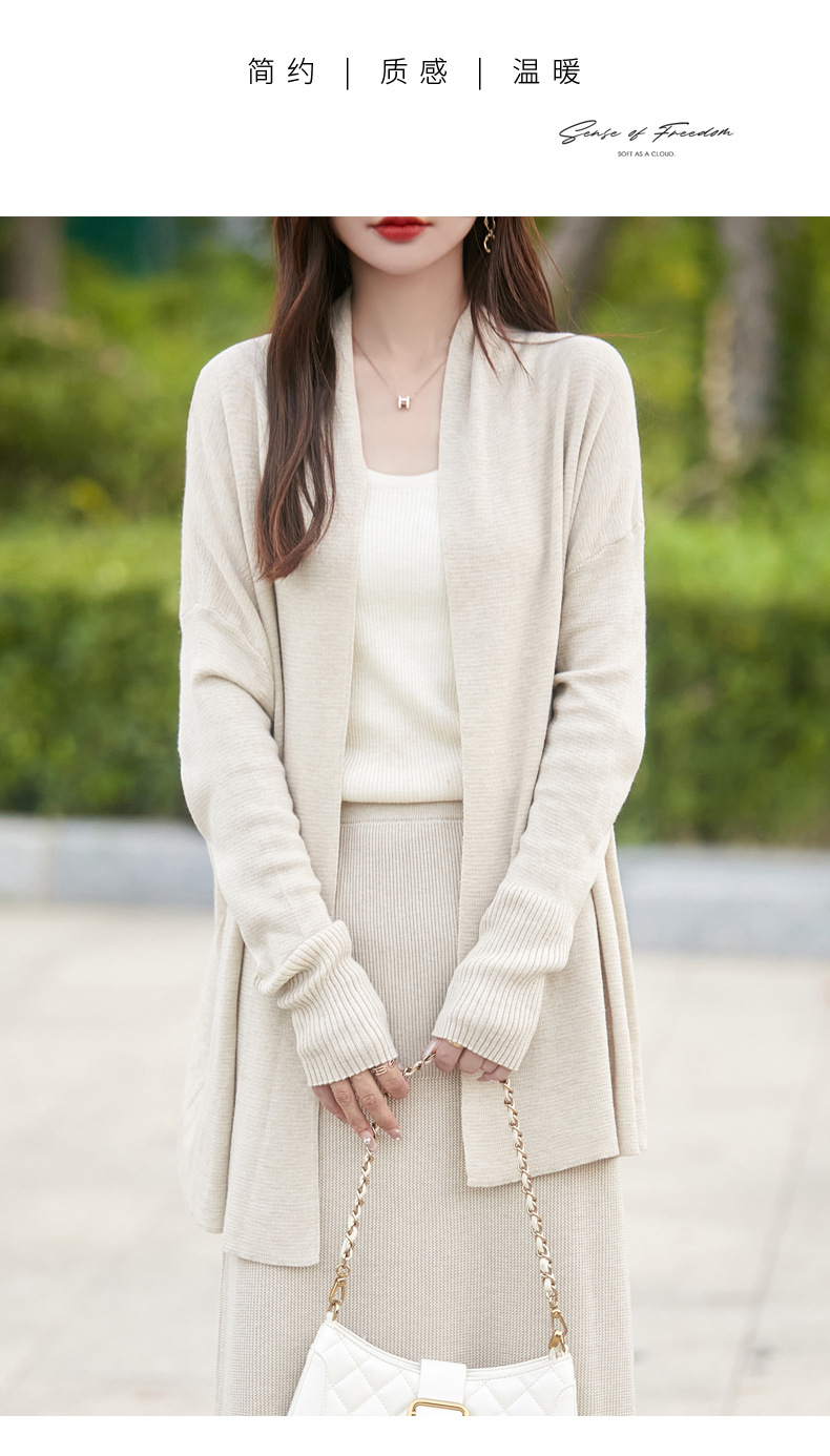 새로운 중간 길이의 루즈핏 니트 가디건, 캐주얼하고 세련된 버튼 없는 긴팔 울 코트스토어 가기