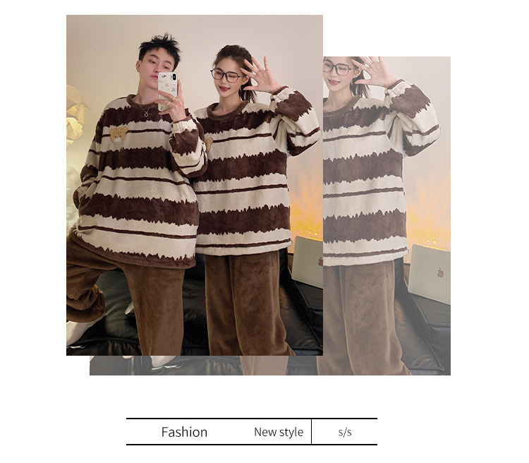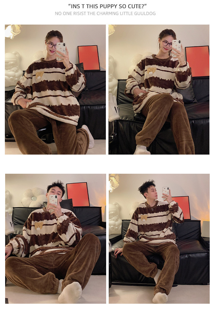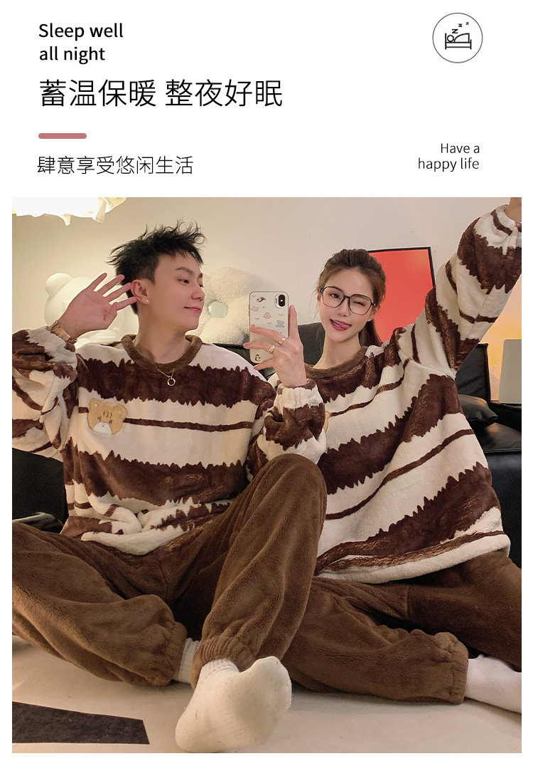 가을과 겨울 플란넬 커플 잠옷 두꺼운 여자의 산호 양털 홈 옷 세트 남자의 새로운 겨울 만화