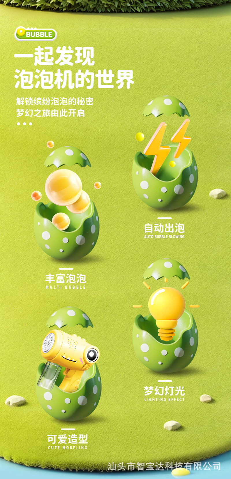 새로운 공룡 버블 머신, 완전 자동 인기 전동 버블건, 어린이 장난감, 노점 야시장 선물 도매스토어 가기
